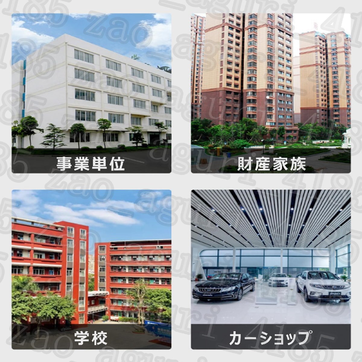 【適合】家庭、オフィス、不動産管理者、集合住宅、駐車場、自動車ディーラー、修理工場、ボートディーラー、レンタカー代理店、駐車場、車体工場などに最適です。