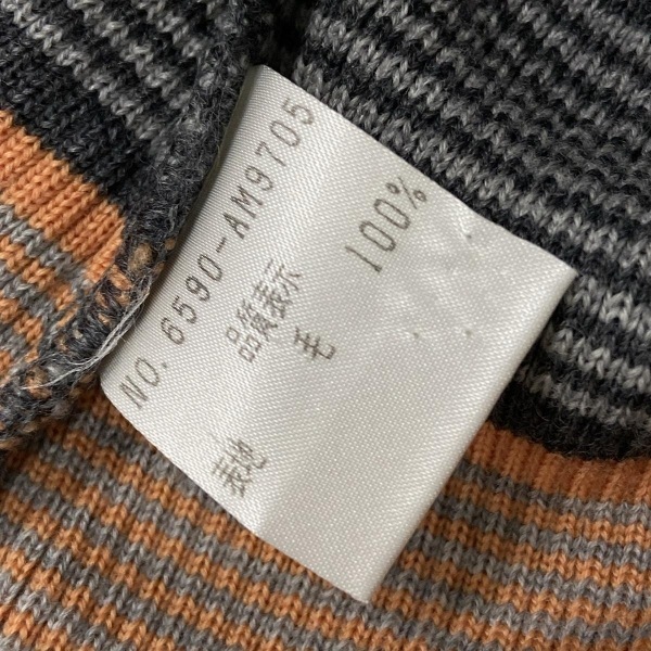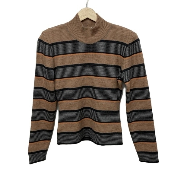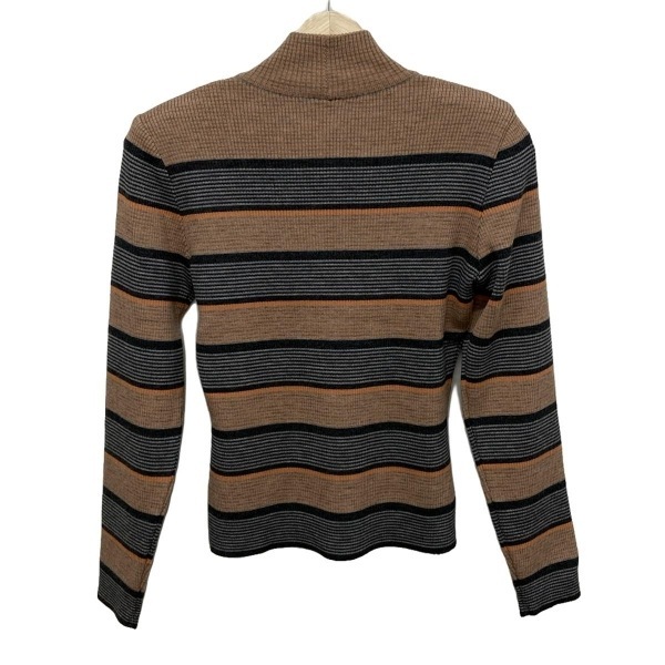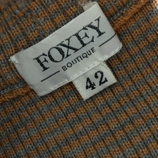 フォクシー FOXEY 長袖セーター/ニット サイズ42 L - ダークグレー×オレンジ×マルチ レディース ハイネック/ボーダー/肩パッド トップス