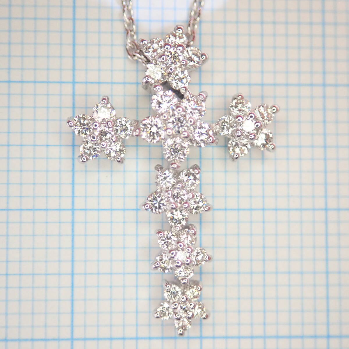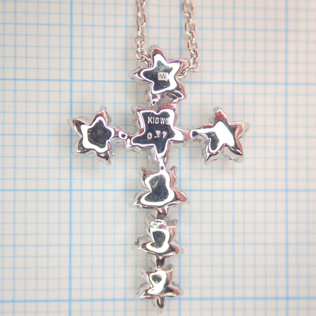 ■K18WGダイヤモンドクロスペンダントネックレス 0.71ct 40cm 5.6g■十字架■丸アズキ小豆■中古磨き仕上げ■