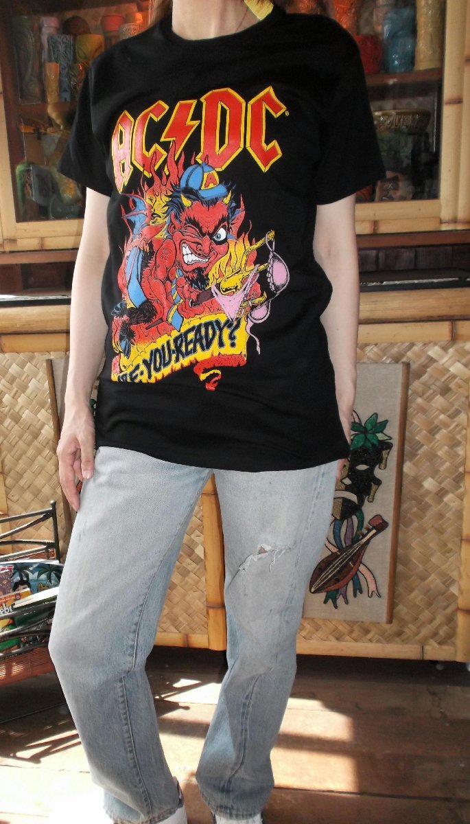| AC/DC UNISEX T-SHIRT: ARE YOU READY? An official licensed AC/DC Unisex Tee featuring the 'Are You Ready?' design motif. This high quality t-shirt design is available in the black colourway. 正規品 デビューから現在に至るまで硬質で武骨、シンプルなノリにあふれたハードロックを中心に演奏し続ける 「AC/DC」のTシャツ「AC/DC : ARE YOU READY? 」です。 1973年にシドニーで、アンガスとマルコムのヤンガス兄弟を中心に結成されたAC/DC, AC/DCを敬愛するパンクロッカーも多く、長きにわたって変節のない質実剛健な音楽性は、現在も圧倒的に支持されています。 1990年の12thアルバム『レイザーズ・エッジ』収録曲で,1991年にシングルカットされた「ARE YOU READY?」からのデザイン!! カートゥーン風レッドデビルにディフォルメされたアンガスのグッドデザイン! 新品・正規品 Lサイズ 175cm位の方~よいかと思われます。肩幅46cm、着丈71cm、身幅54cm モデル 161cm , Sサイズ着用 メール便送料\250(代引き不可・紛失事故の責任は負いかねます) ACE CAFE LONDON、LUCKY13、MOONEYES、Sailor Jerry等~アメキャラ・企業ロゴ等ライセンスTシャツ、RATFINK関連品、バンドTシャツ、等取り扱っております。 ** 他にも色々出品中です。 CWBT cwktw cwlpm IWTS | |||||||