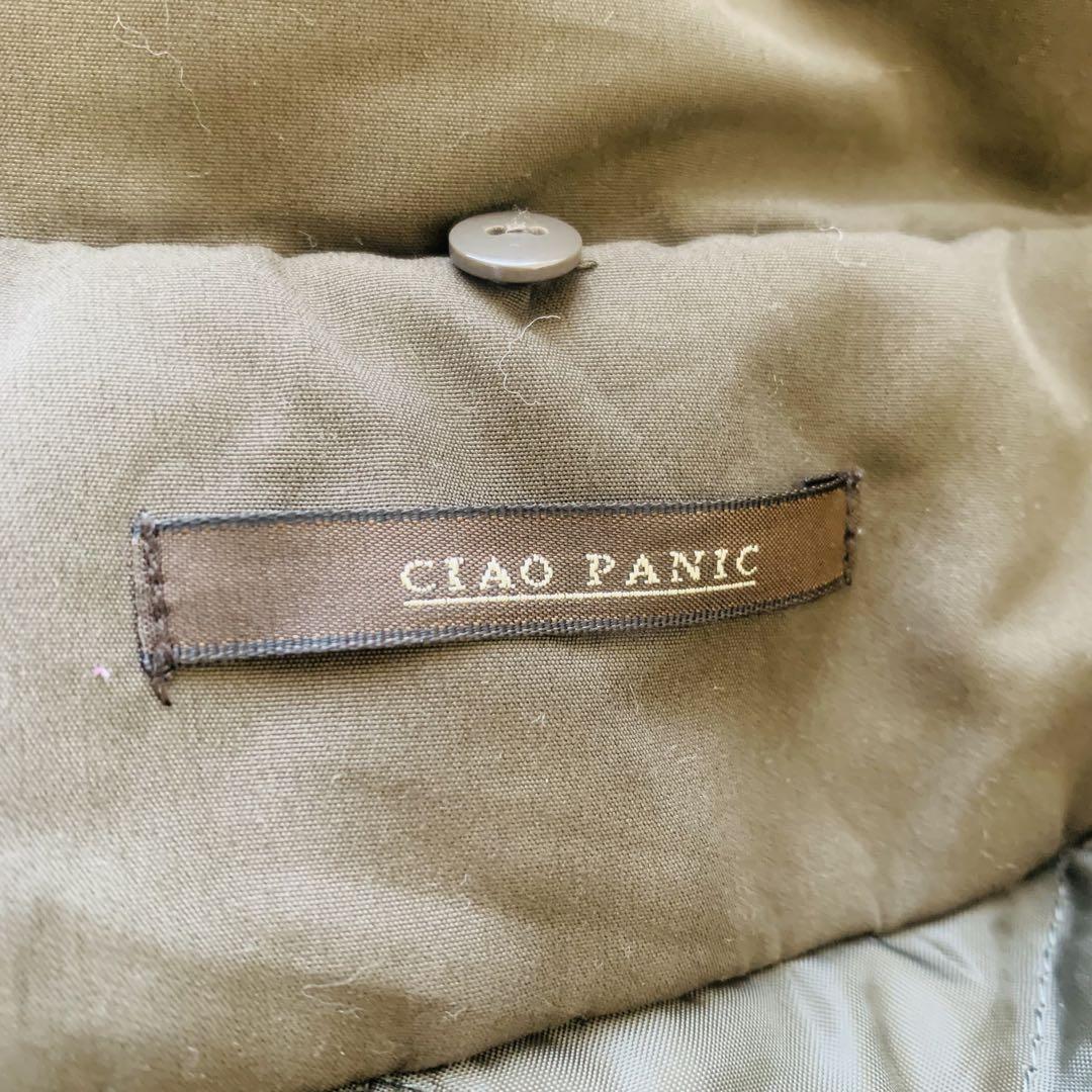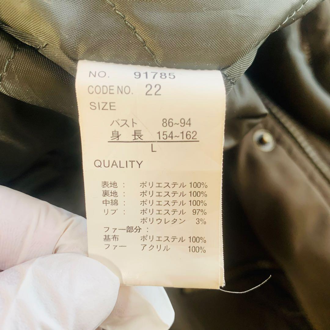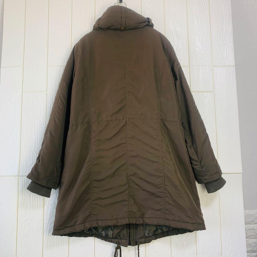 オリーブ色のモッズコート、取り外し可能なフード付き、4つのポケット。