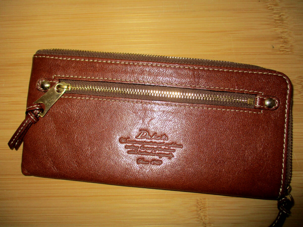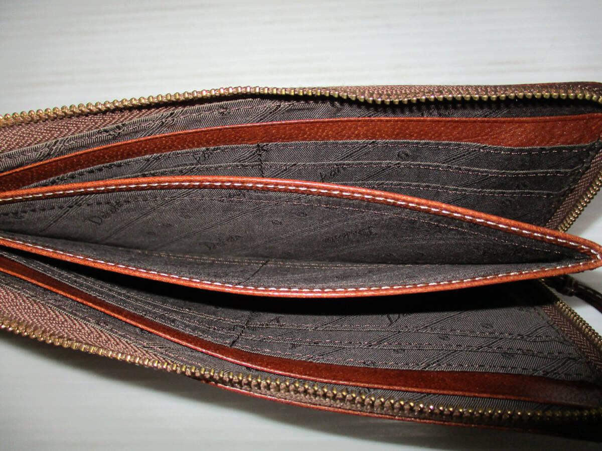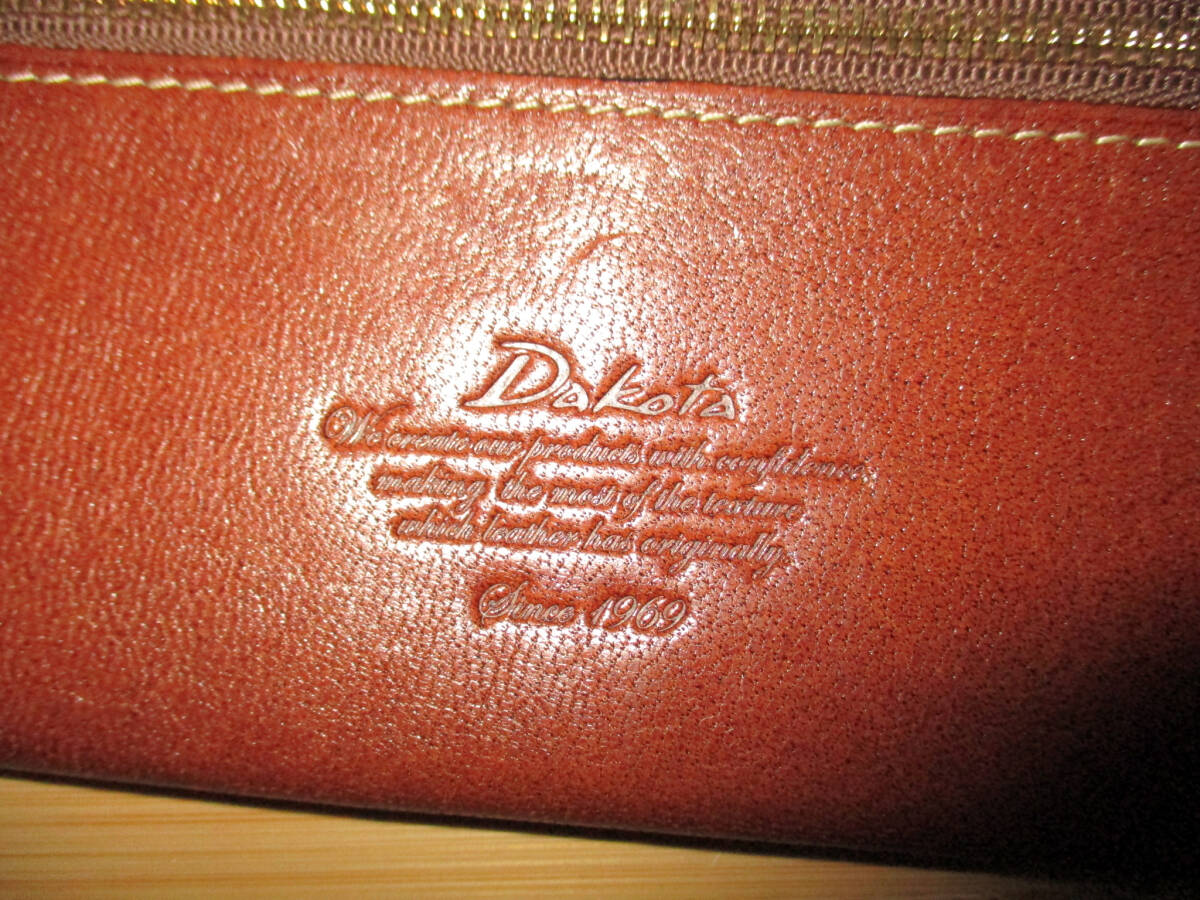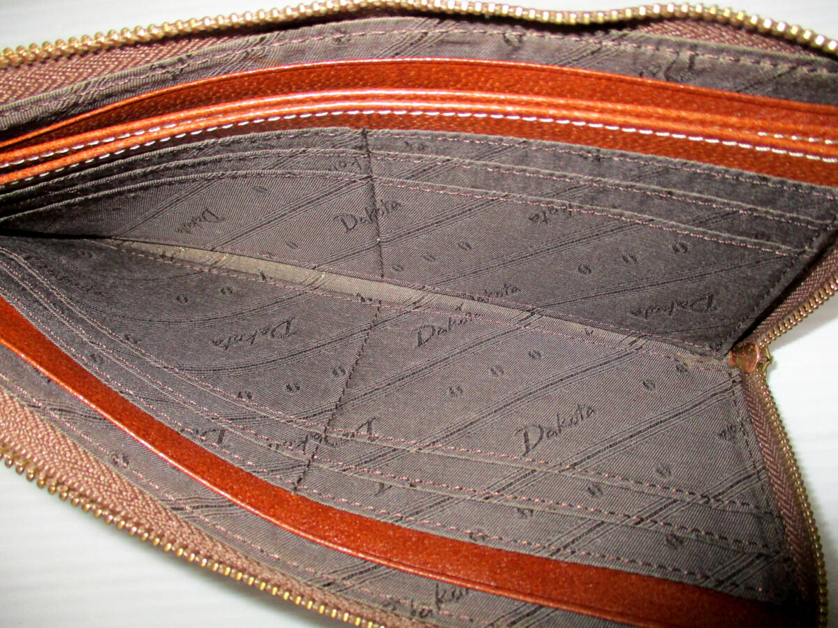 Dakota ダコタ 本革レザー 長財布 ブラウン です。素材は本革です。色はブラウン系です。表側にジップポケット、後ろ側にジップポケットです。内側は札入れ、カード入れ18です。他にポケット2つ付きです。