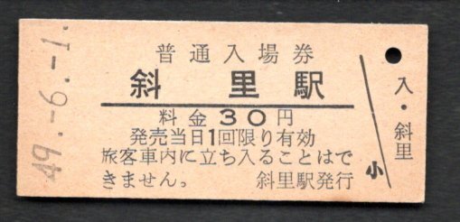駅名改称(釧網本線)斜里駅30円(現 知床斜里駅)