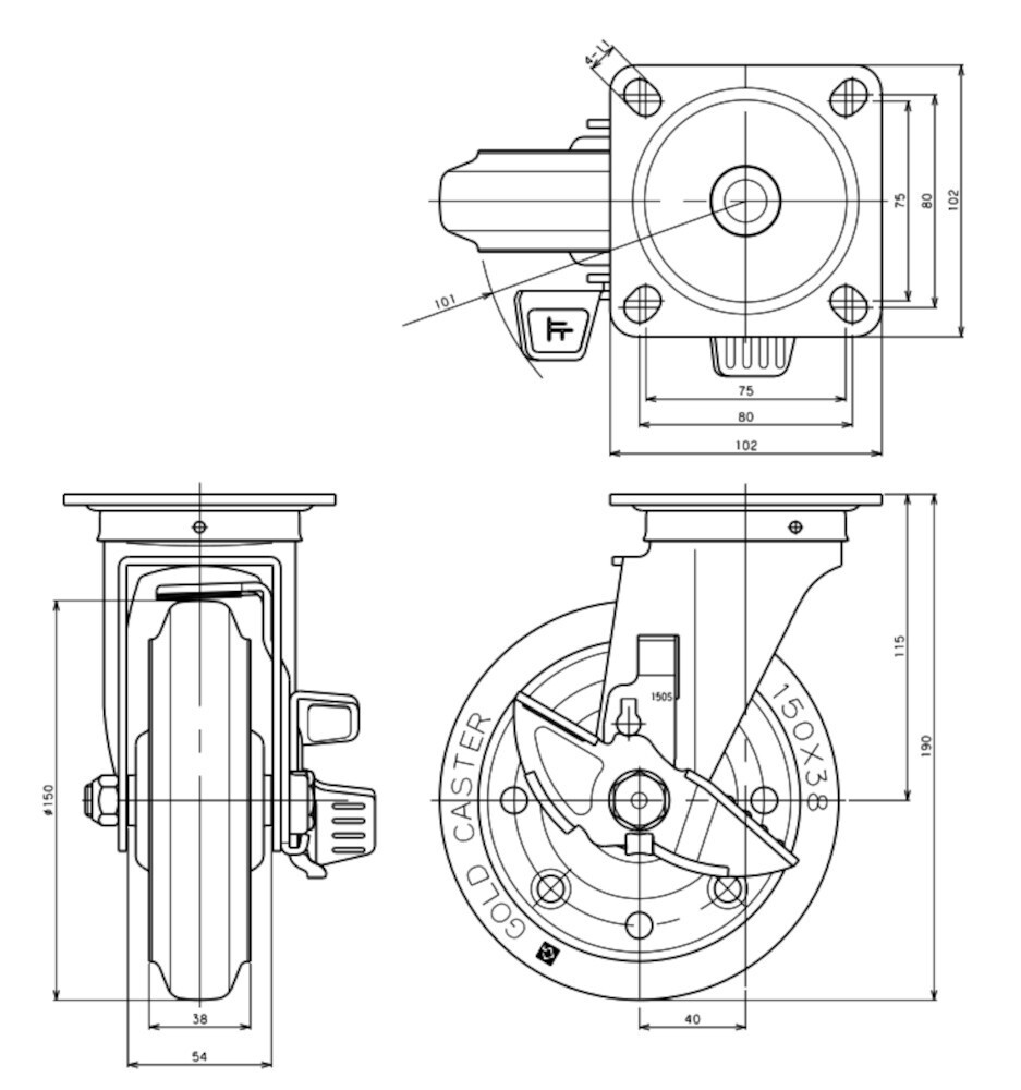 材質(車輪)鉄板ホイール・ゴム巻車輪