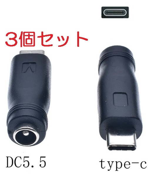 3個セット DC USB 変換 アダプター プラグ ジャック コネクター DC(メス) -USB Type-C (オス) タイプC 外径5.5mm内径2.1mm,