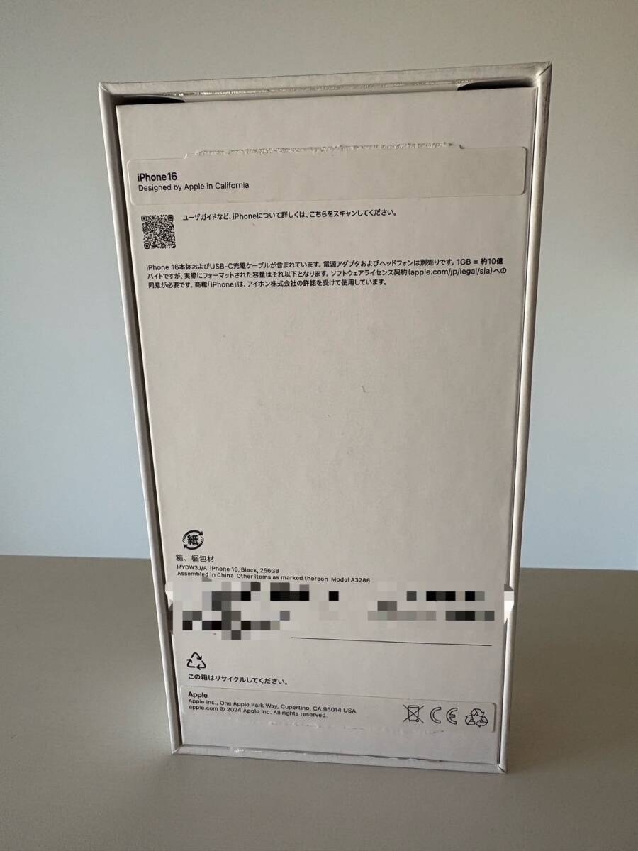 本体はありません。iPhone 16 256G ブラックの箱です。
