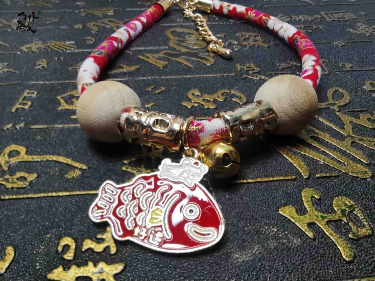 商品名:ファッショントレンド 美しい刺繍帯 赤色財を招く魚鈴 ペット 首輪
