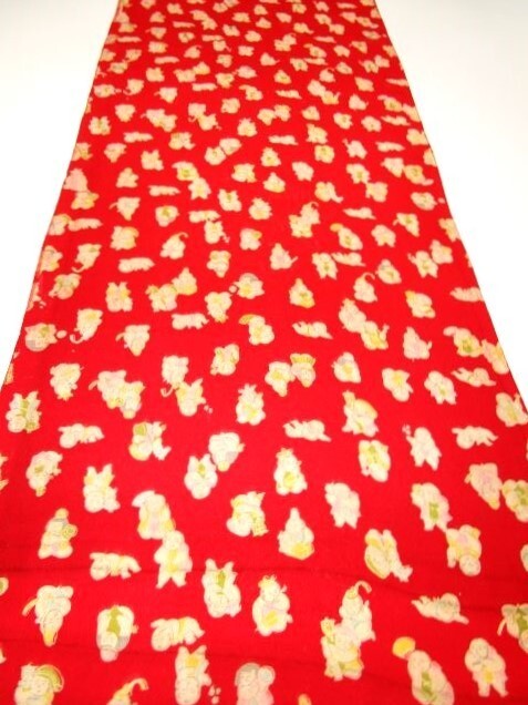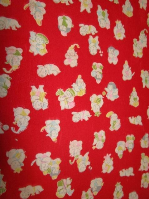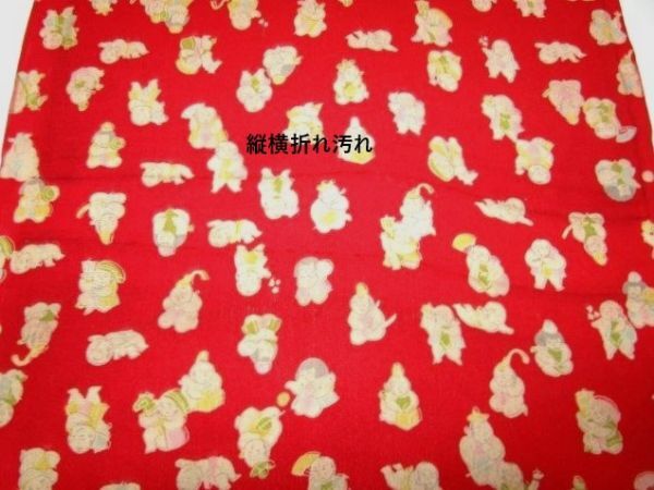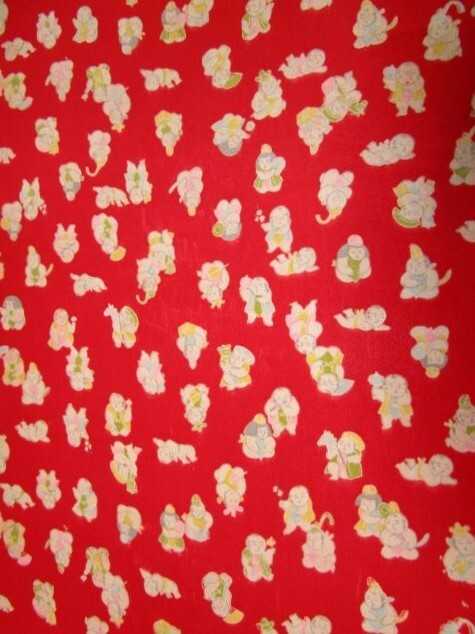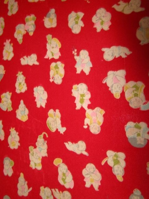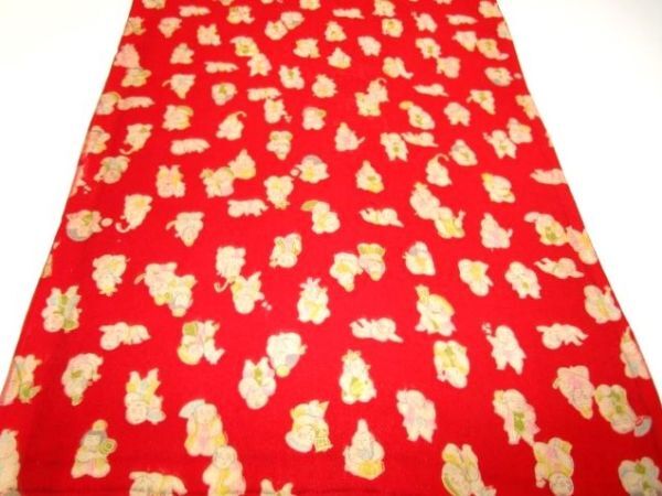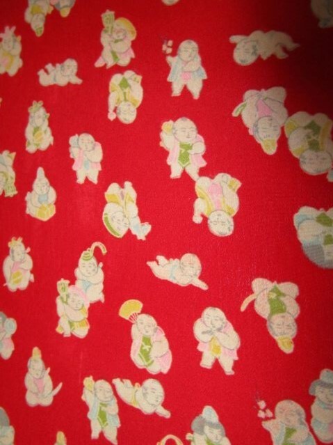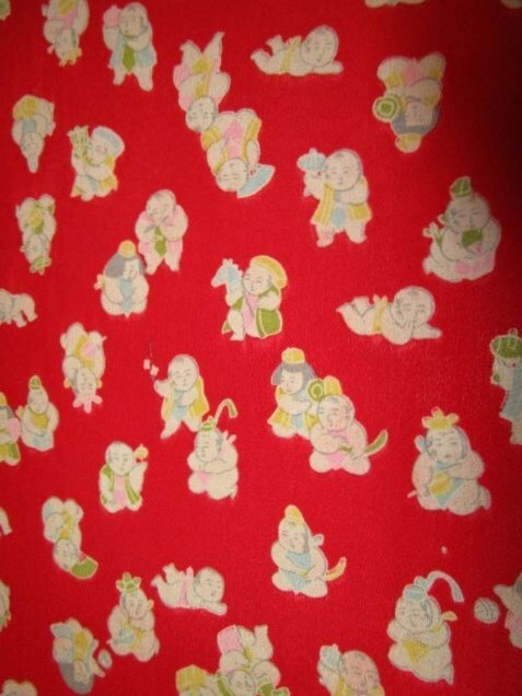 E-96★赤地*小さい唐子がたくさん!正絹*古布はぎれ★文化人形/一閑張り/吊るし雛/市松人形アンティーク/ちりめん細工