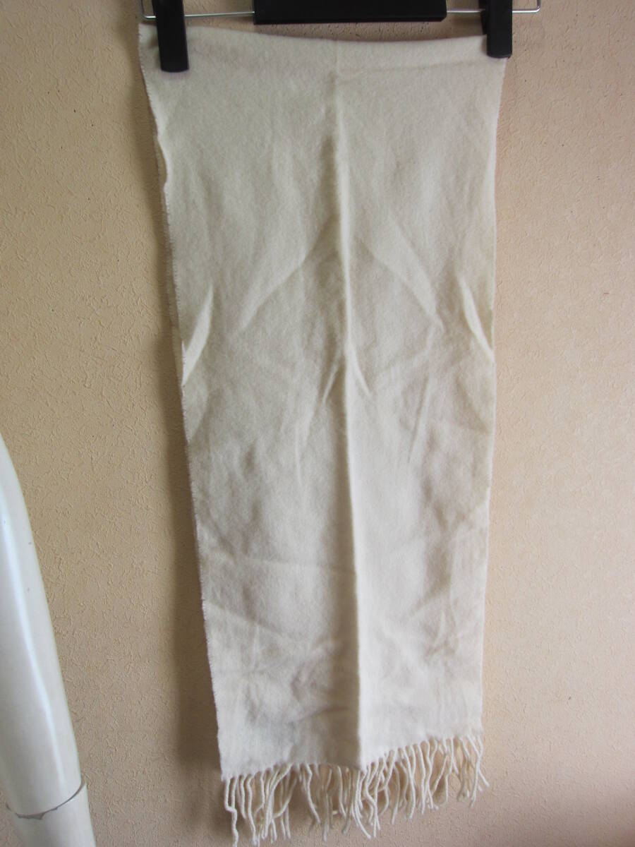状態は、使用感多少、問題なくお使いいただけます。 サイズは約・幅27cm、長さ138cm(フリンジ含まず)です。 注)画像の白い丸はフラッシュの加減で、汚れなどではございません |