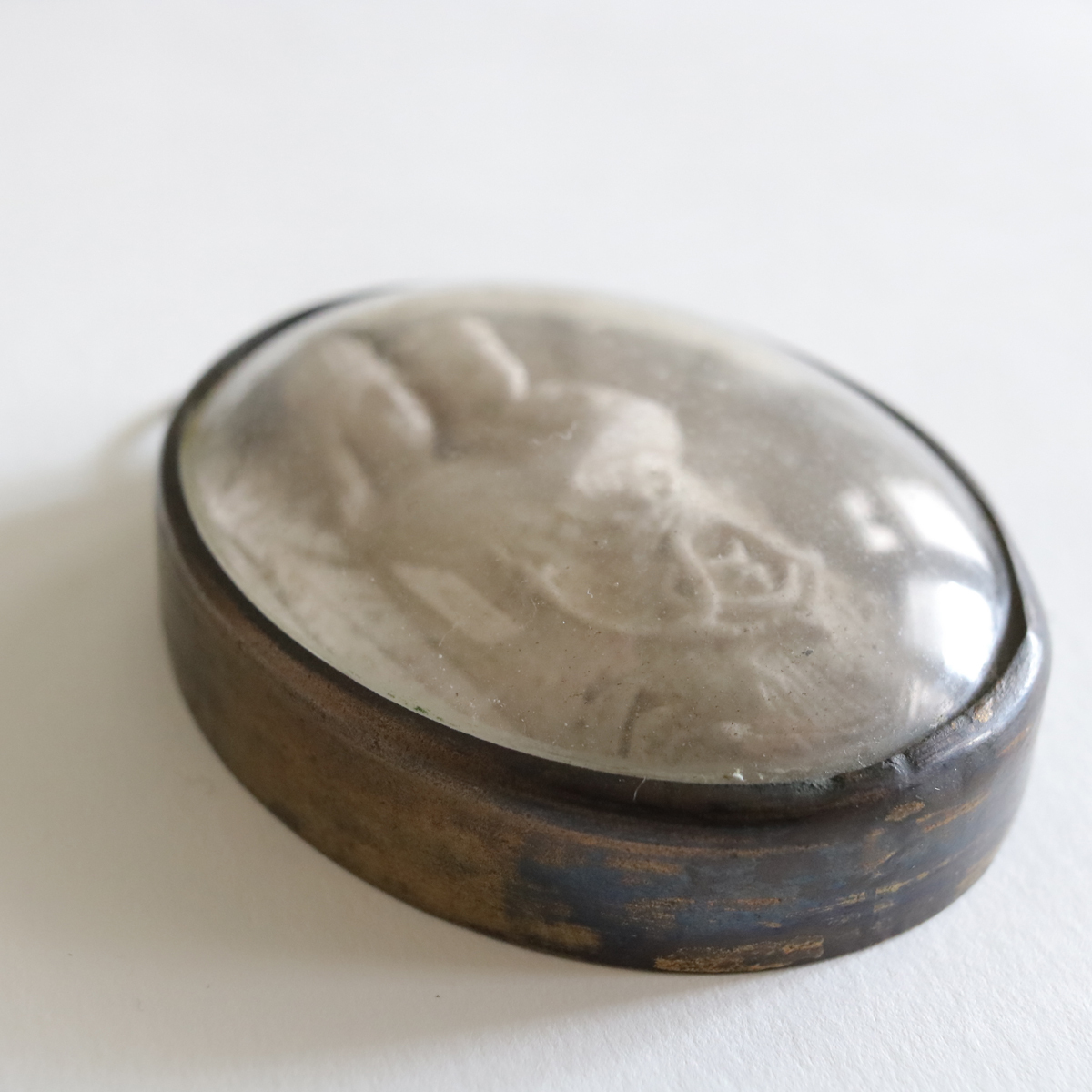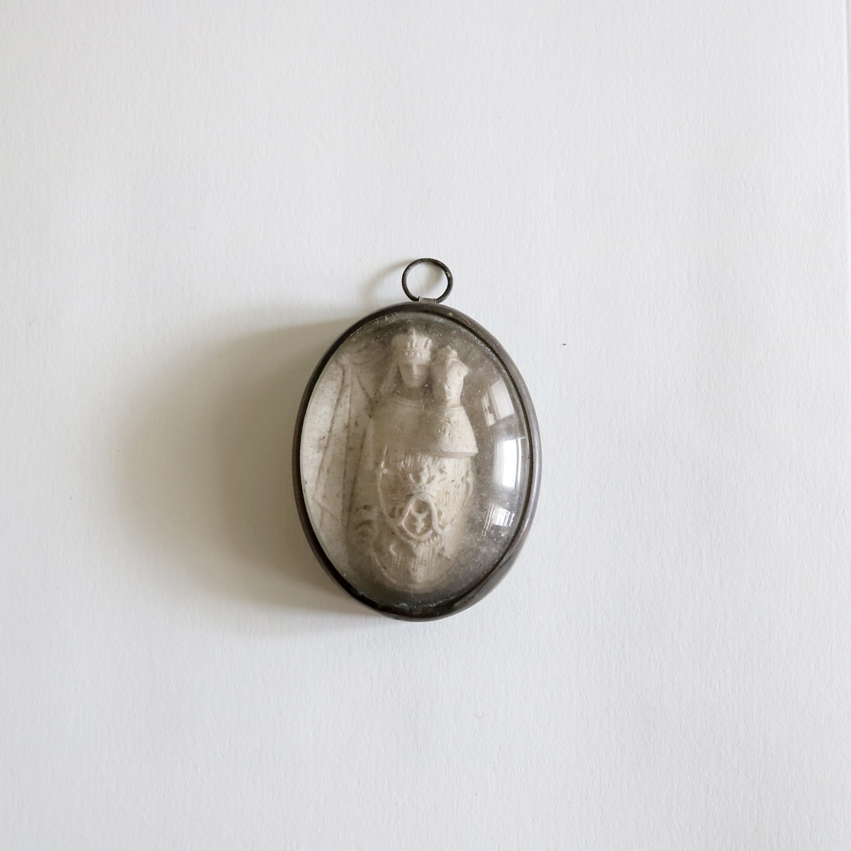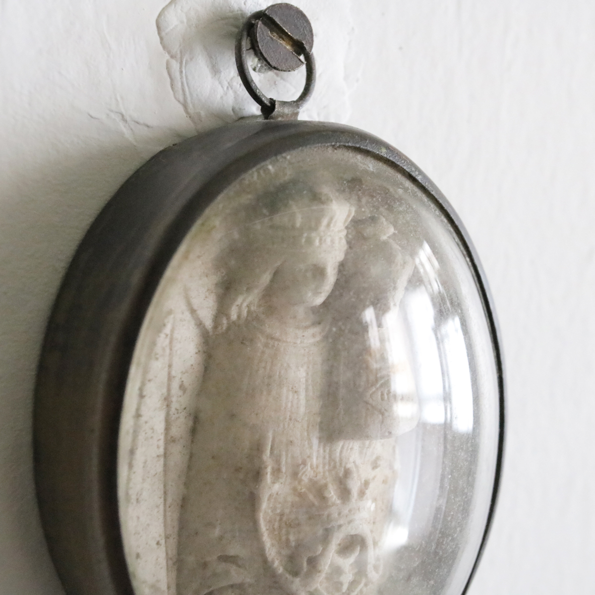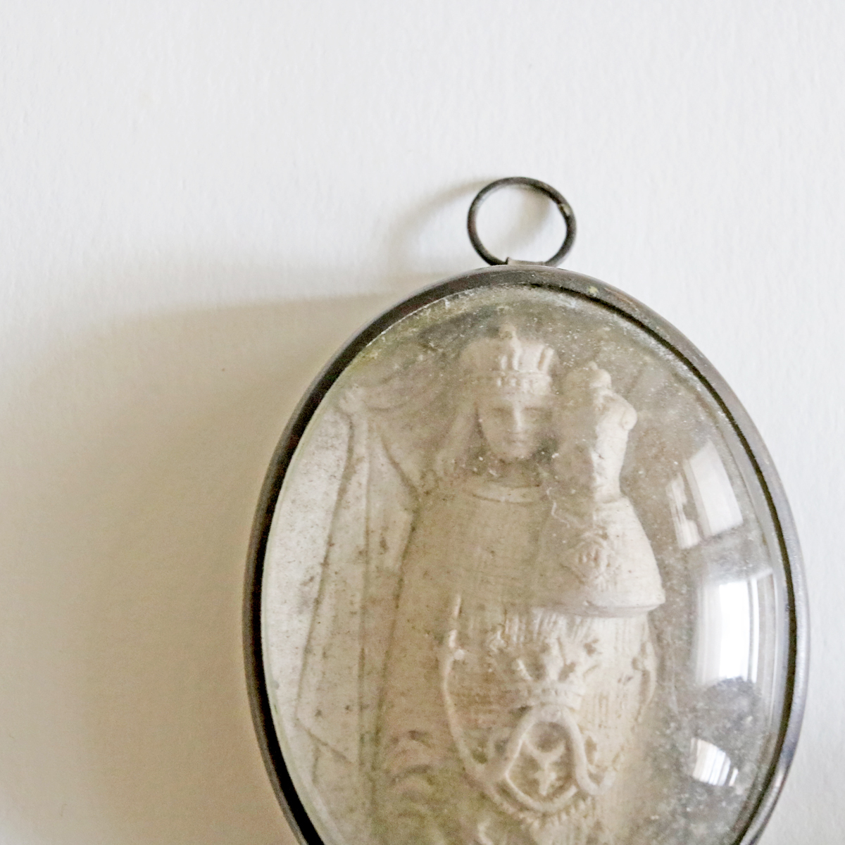 19世紀 1800年代 ガラスドーム 聖母マリア 教会 キリスト マリア フランスアンティーク 聖品 クロス 十字架 メダイ メシャム オーバル 彫刻