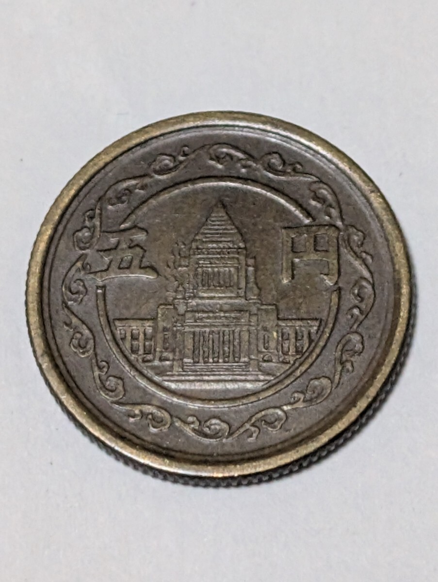 昭和23年 5円黄銅貨 国会議事堂 穴無し