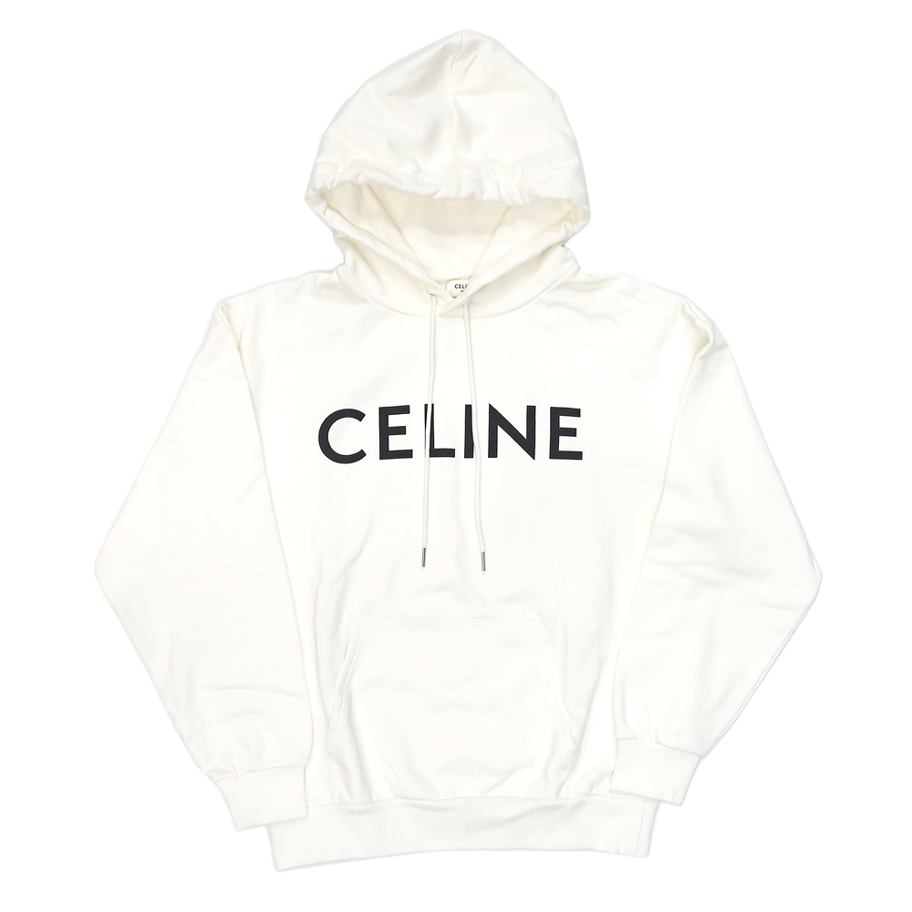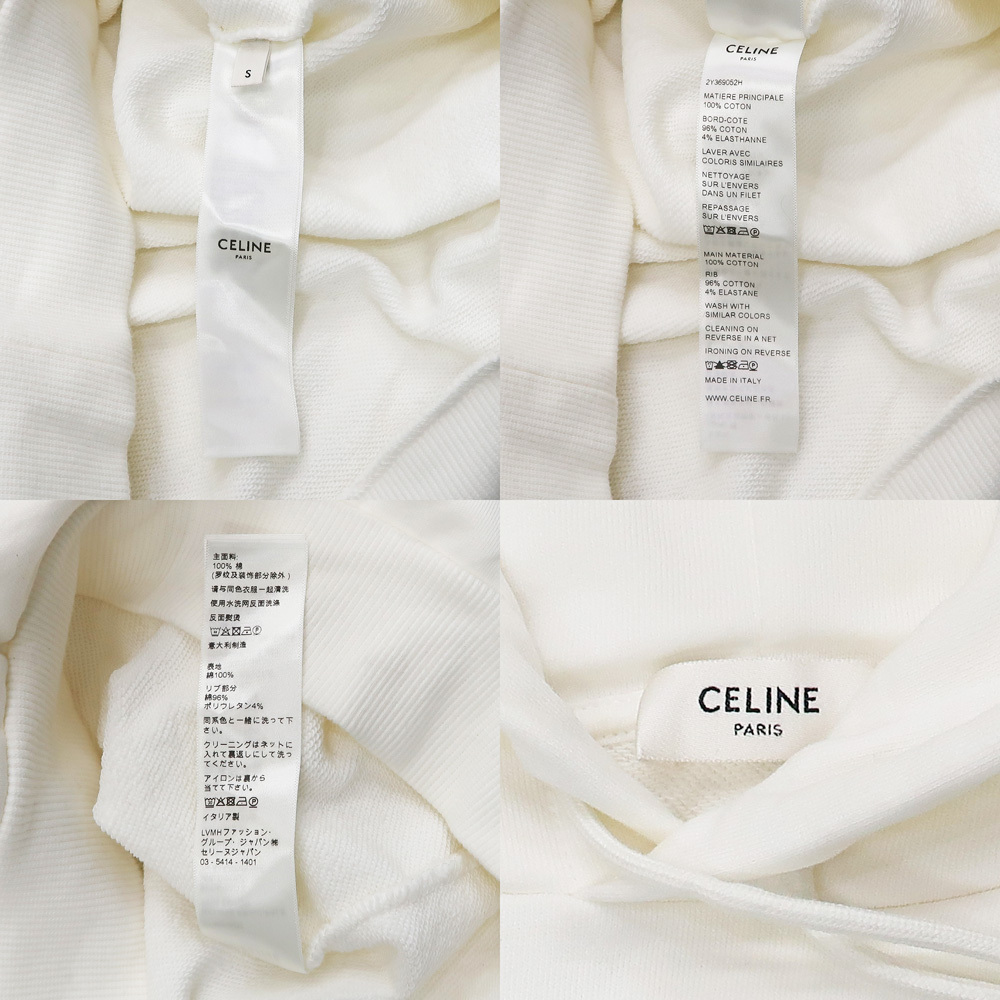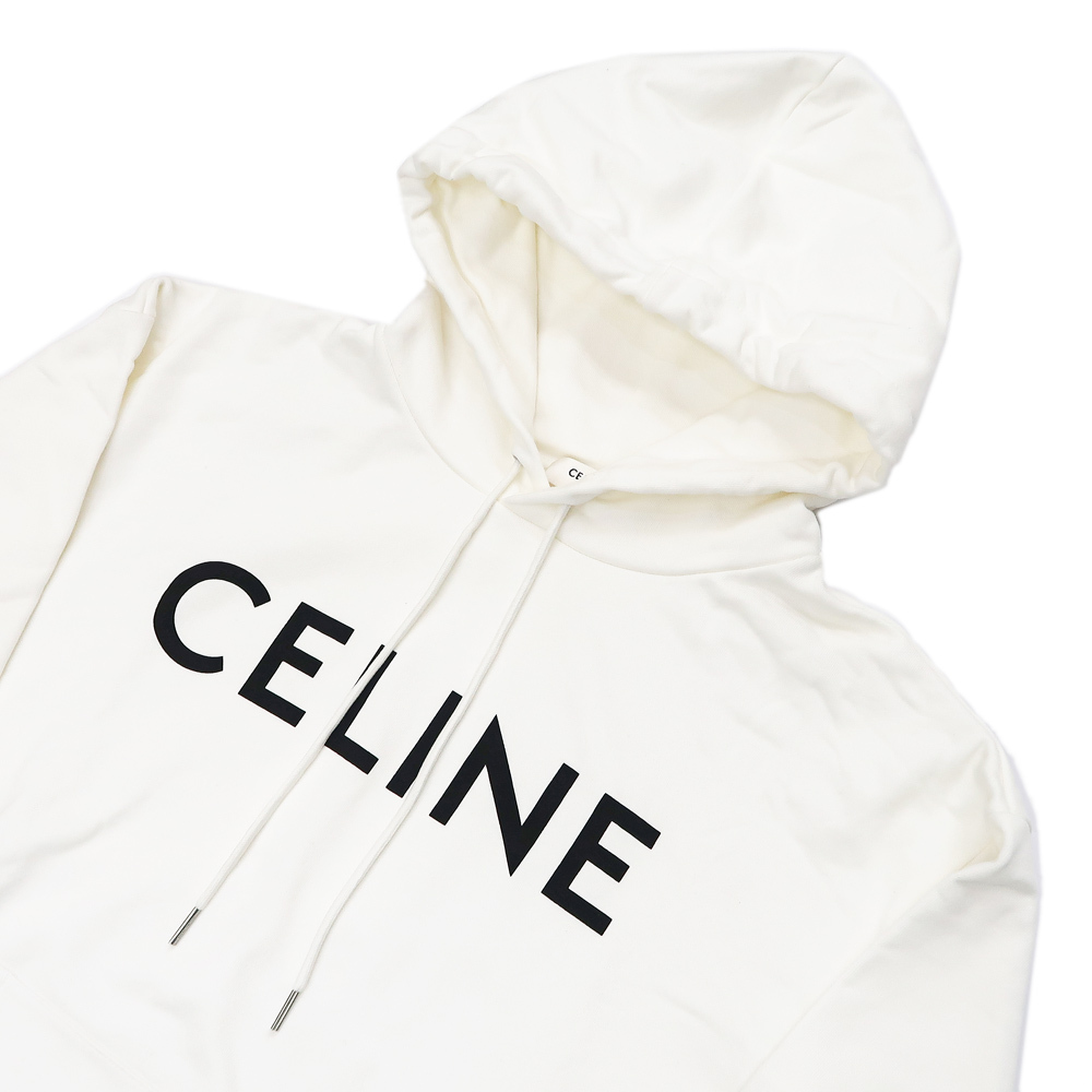 【名東】セリーヌ スウェット パーカー ロゴ Sサイズ ホワイト 白 綿100% 長袖 レディース アパレル 女 服