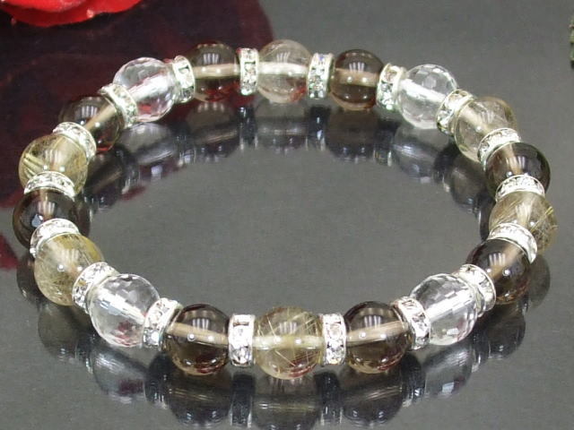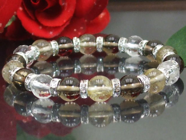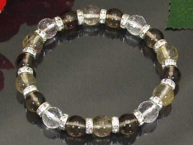 ★☆★ ルチル&スモーキークオーツ ブレスレット ゴージャスに! 癒し 金運up♪ パワーストーン おまけ付き 送料無料(a_r)b