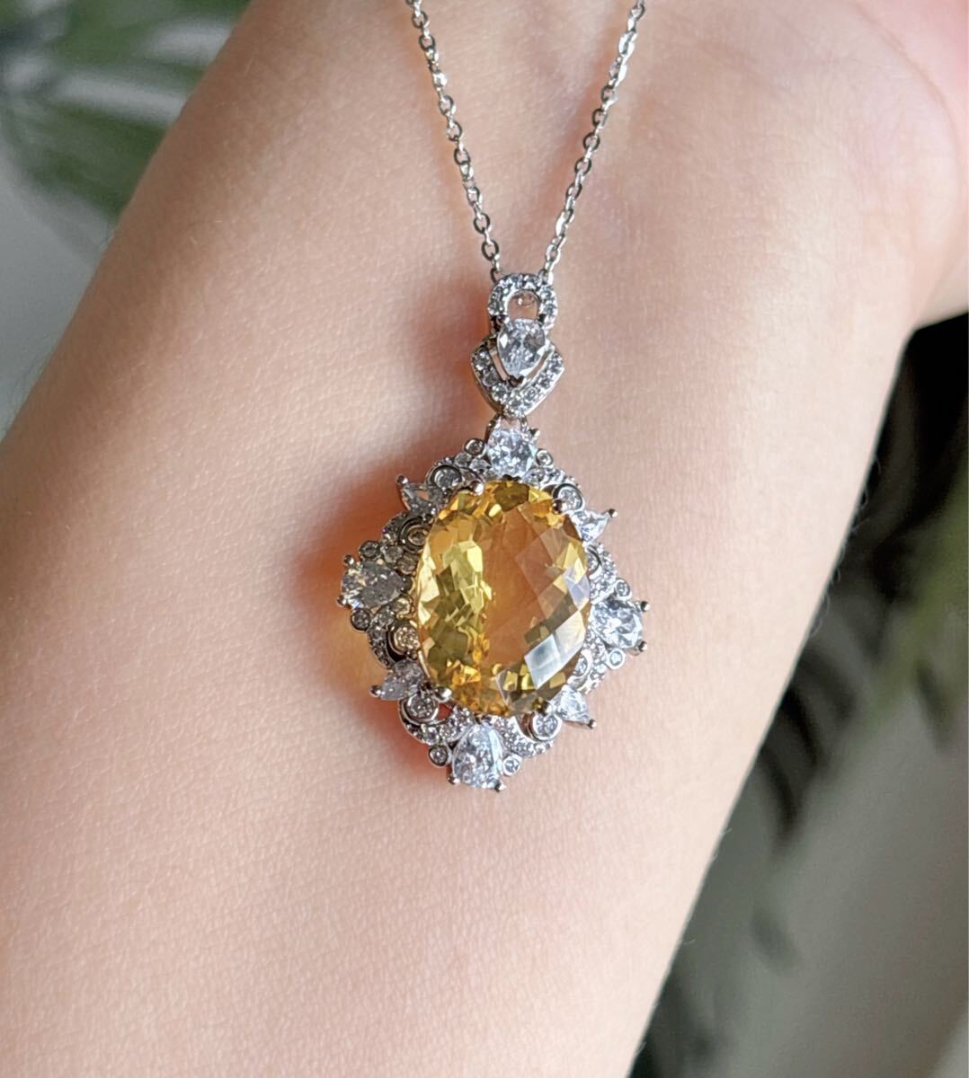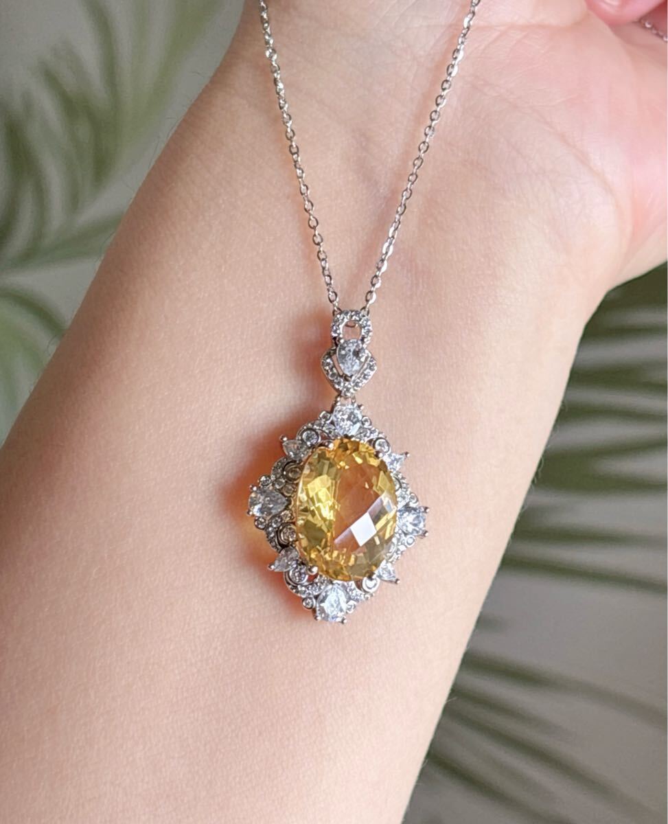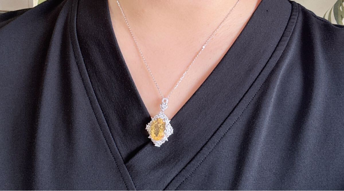 天然石 高級品シトリン(黄水晶)ペンダントのサイズ約:19.8mm*22mm*厚さ8mm;