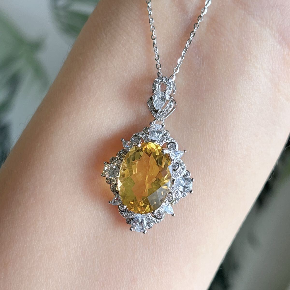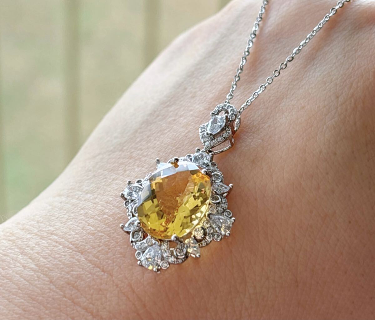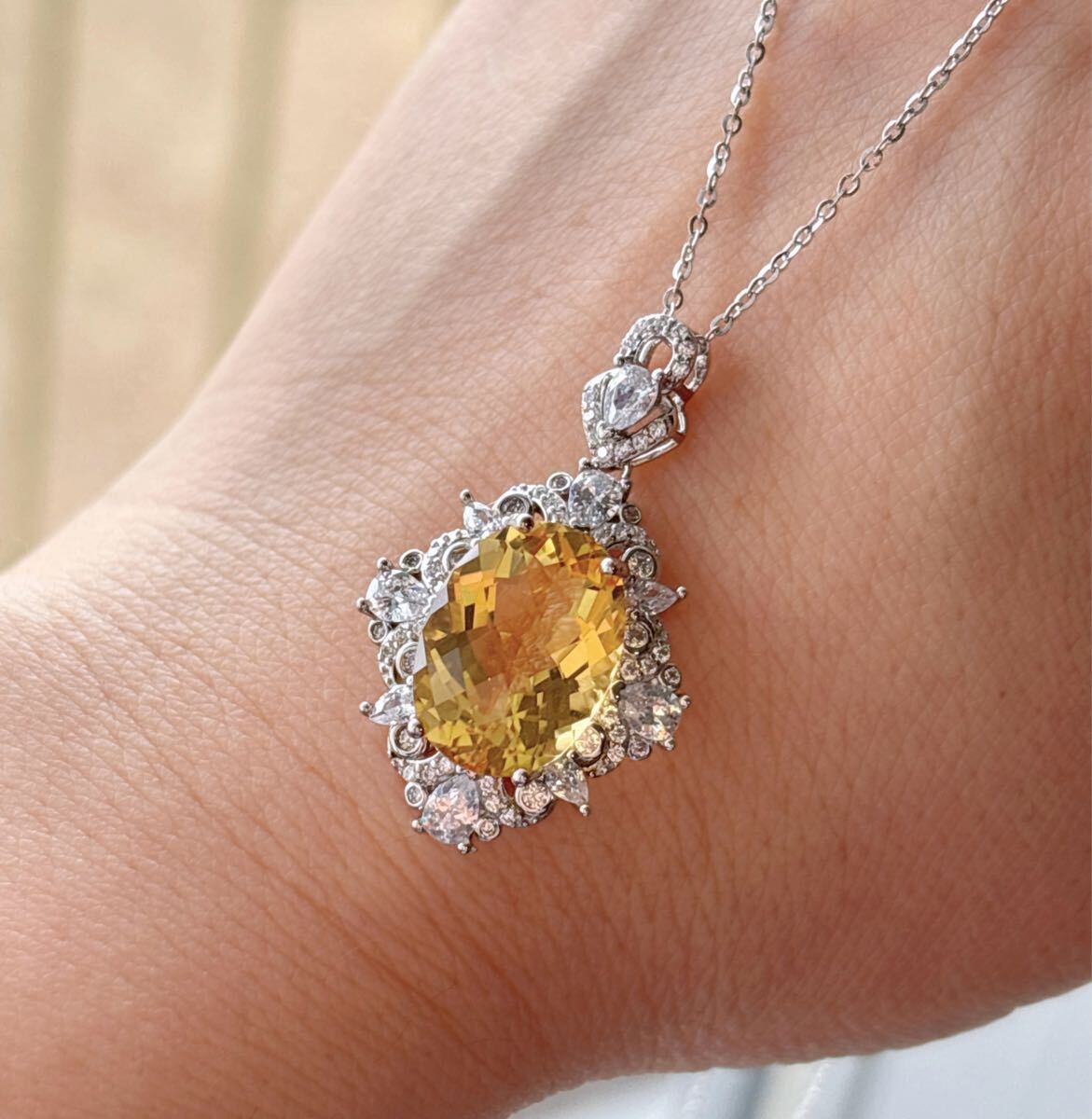 天然石 高級品シトリン(黄水晶)ペンダントのサイズ約:19.8mm*22mm*厚さ8mm;