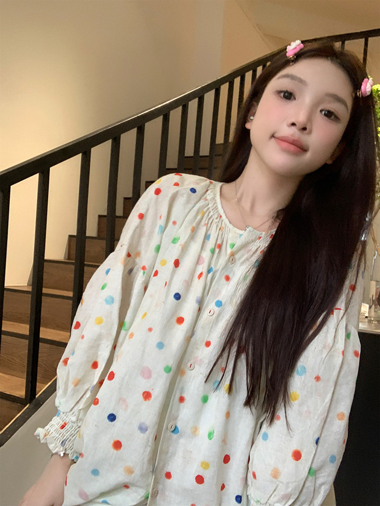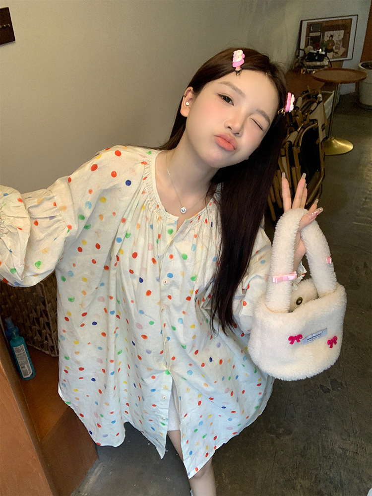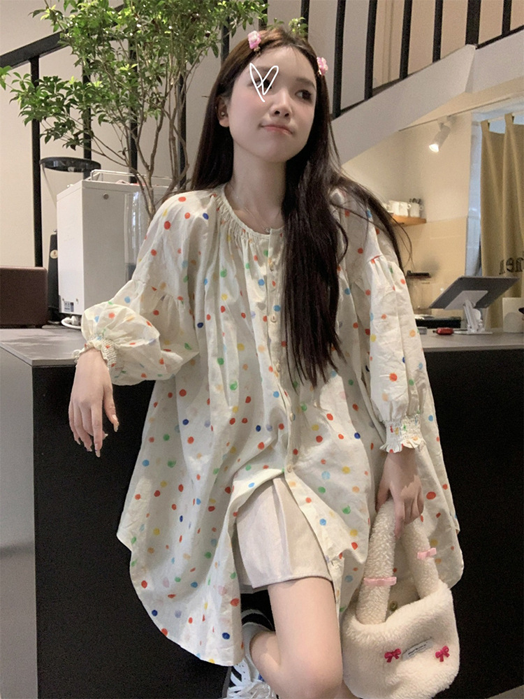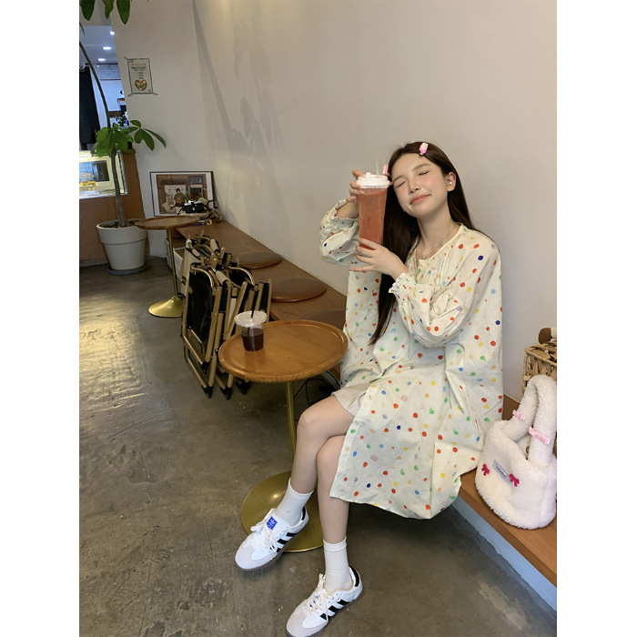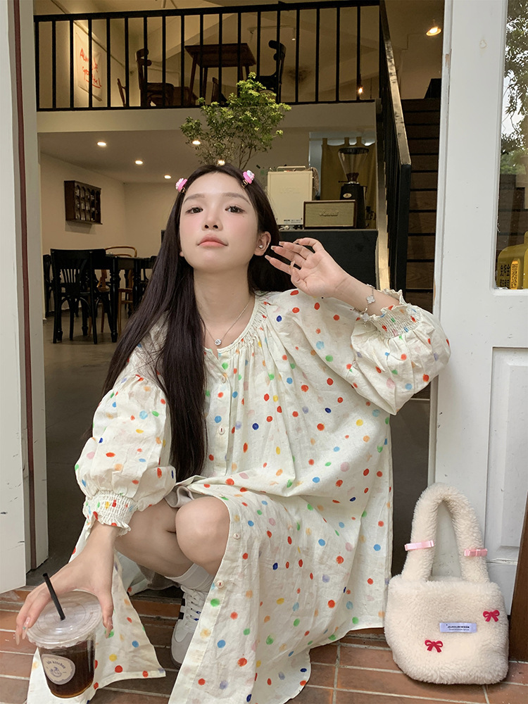 新品未使用カラフルドット柄 ワンピース チュニック 大人可愛 ゆったり オシャレ フリーサイズ ナチュラル 綿100%コットン