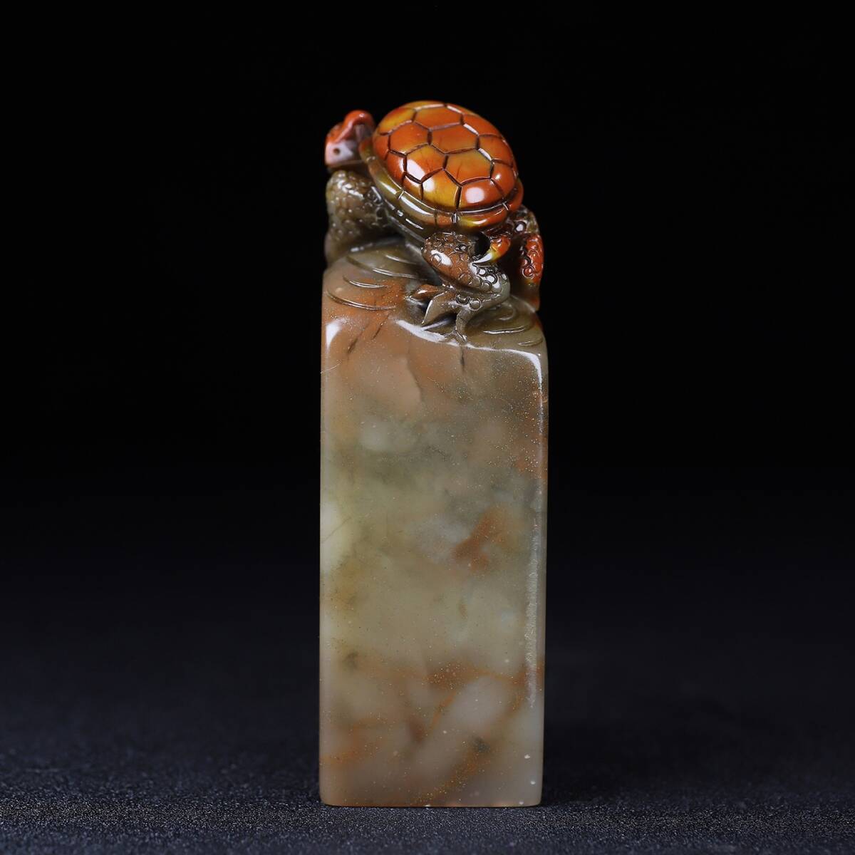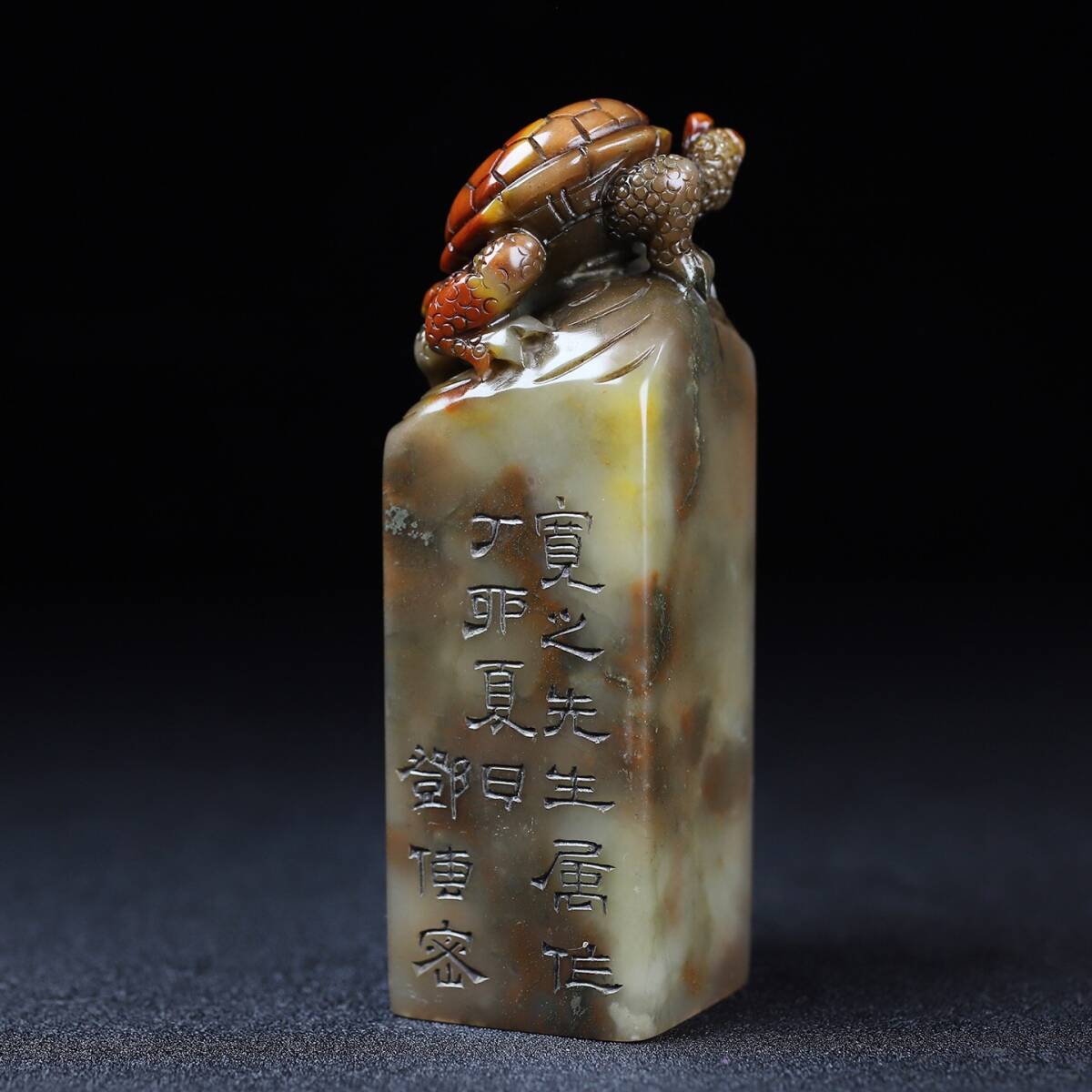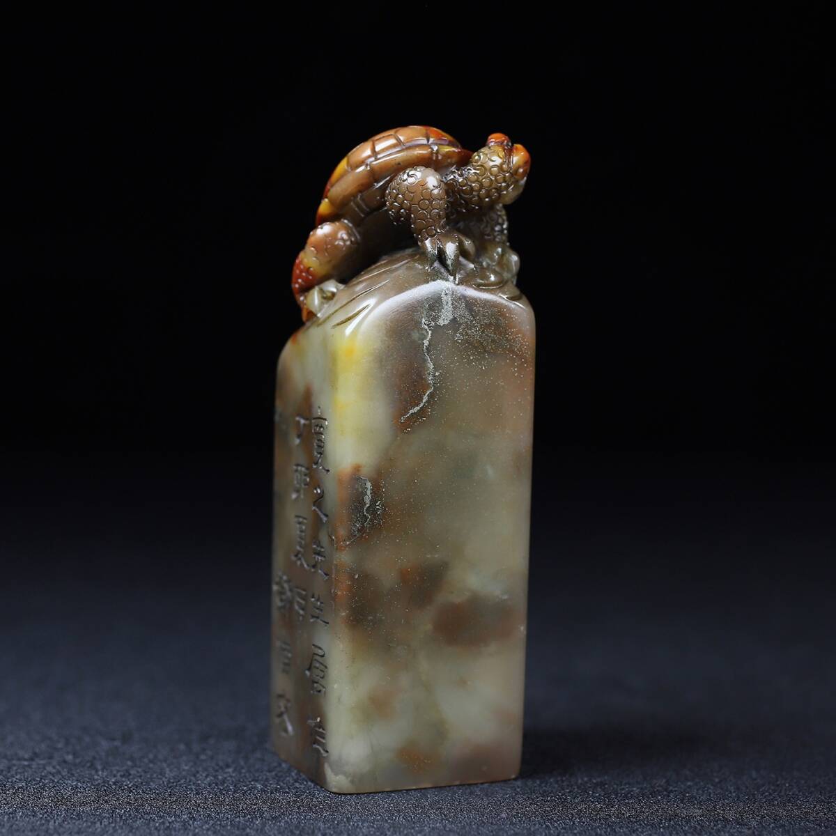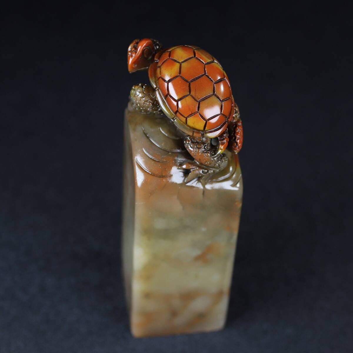 【超珍館蔵】寿山石 芙蓉石 細密彫 長寿龜鈕印章 置物 古賞物 古美術品 稀少珍蔵品