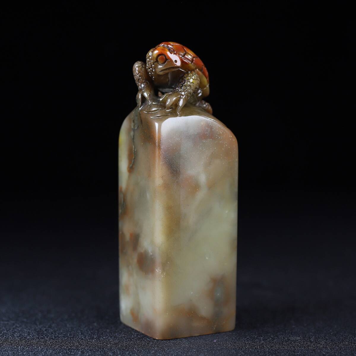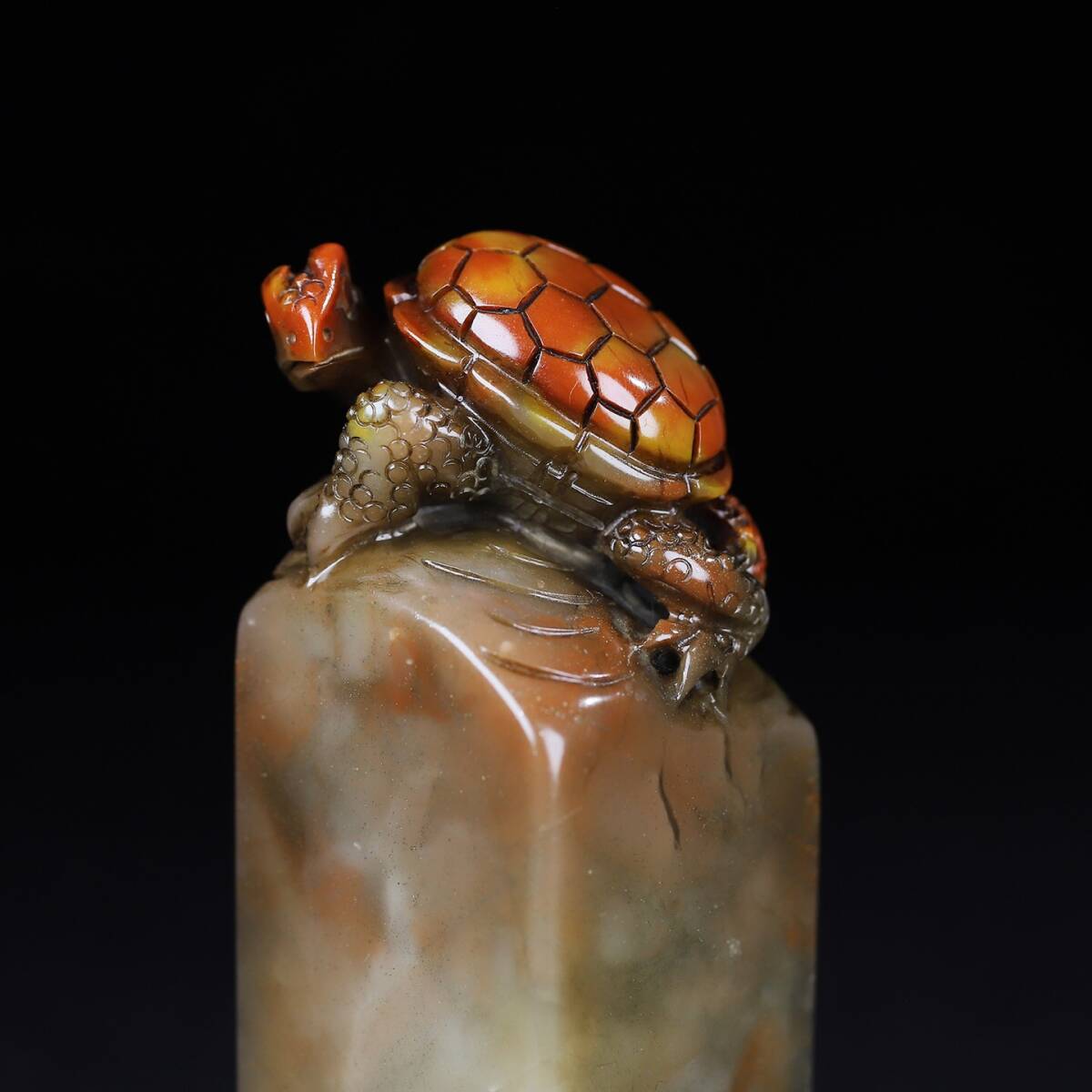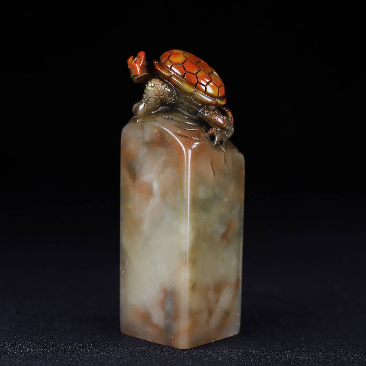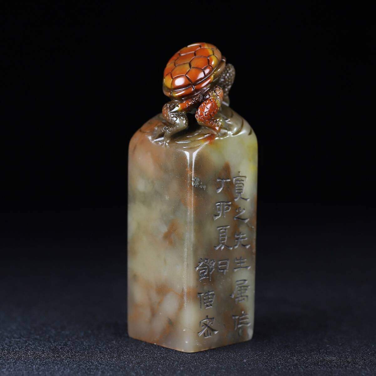 【超珍館蔵】寿山石 芙蓉石 細密彫 長寿龜鈕印章 置物 古賞物 古美術品 稀少珍蔵品