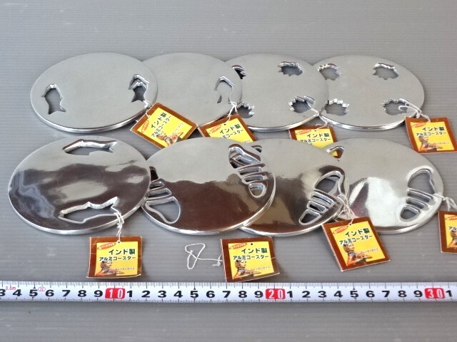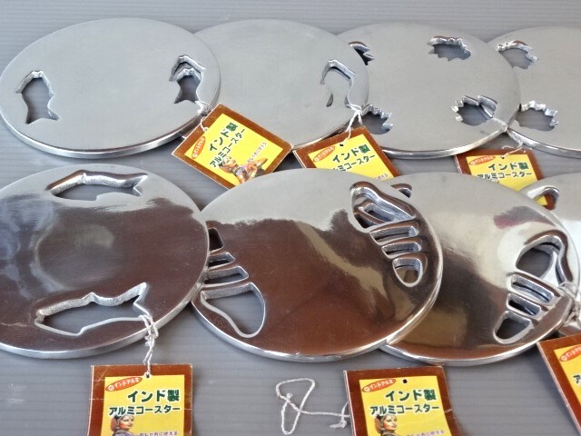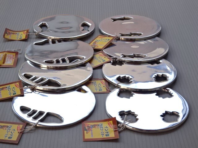 ●エスニック《インド製 金属(アルミ)コースター☆直径10㎝×8枚セット》未使用品☆送料ネコポス無料です!