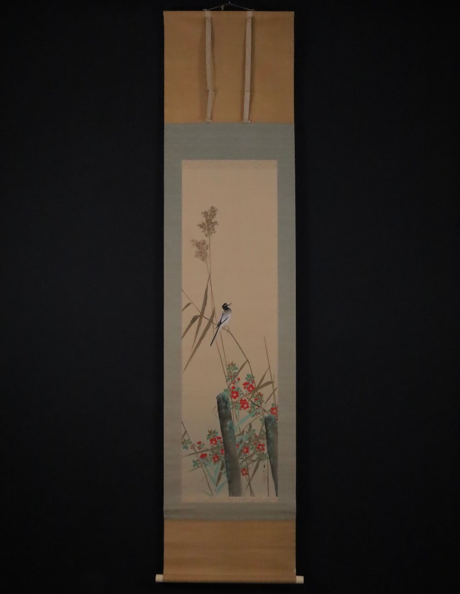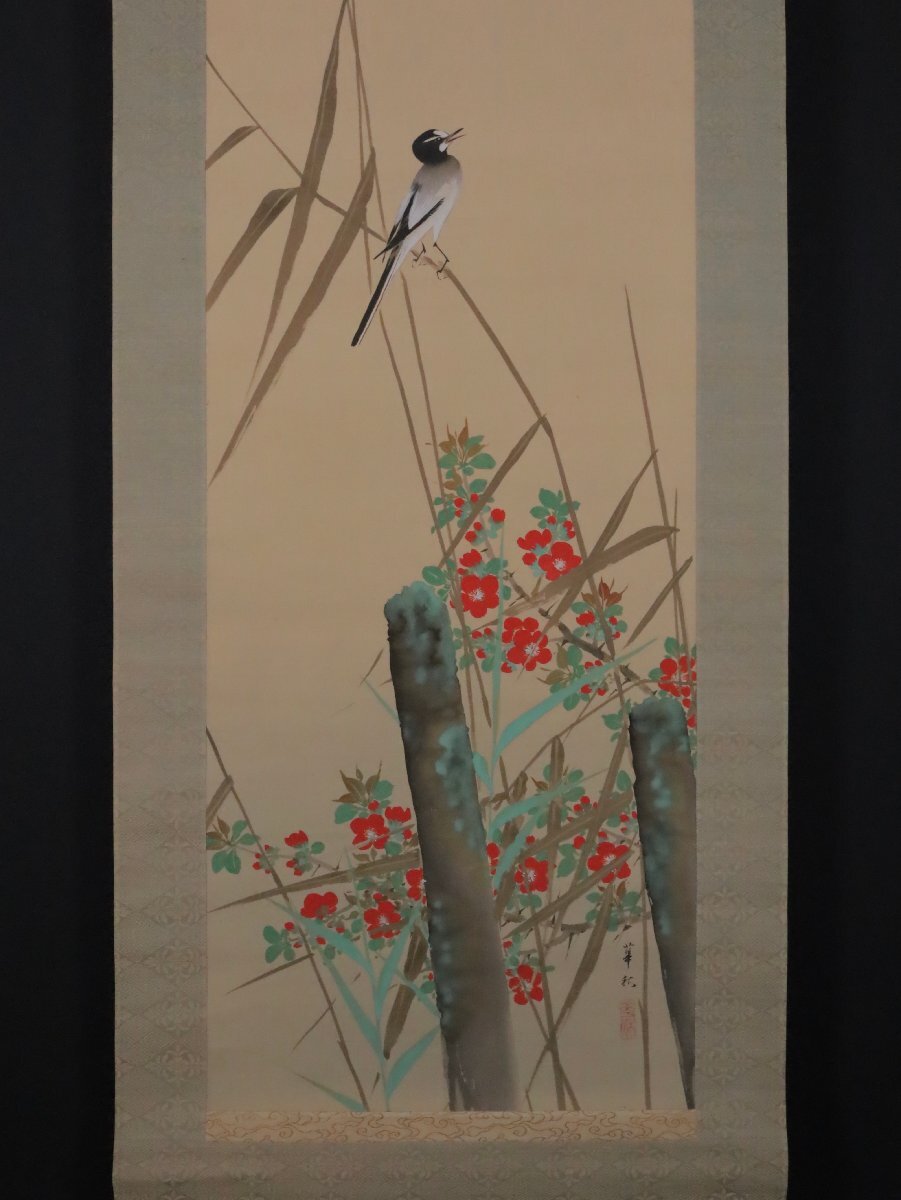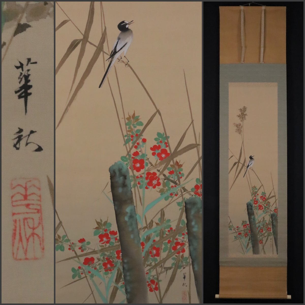 【模写】吉】12168 井口華秋 花鳥図 竹内栖鳳師事 四条派 茶掛け 茶道具 掛軸 掛け軸 骨董品