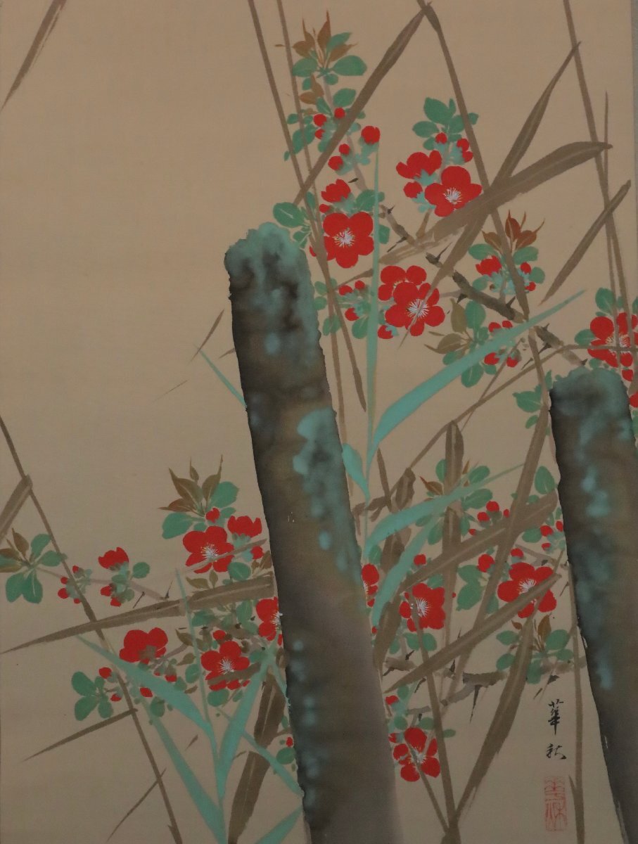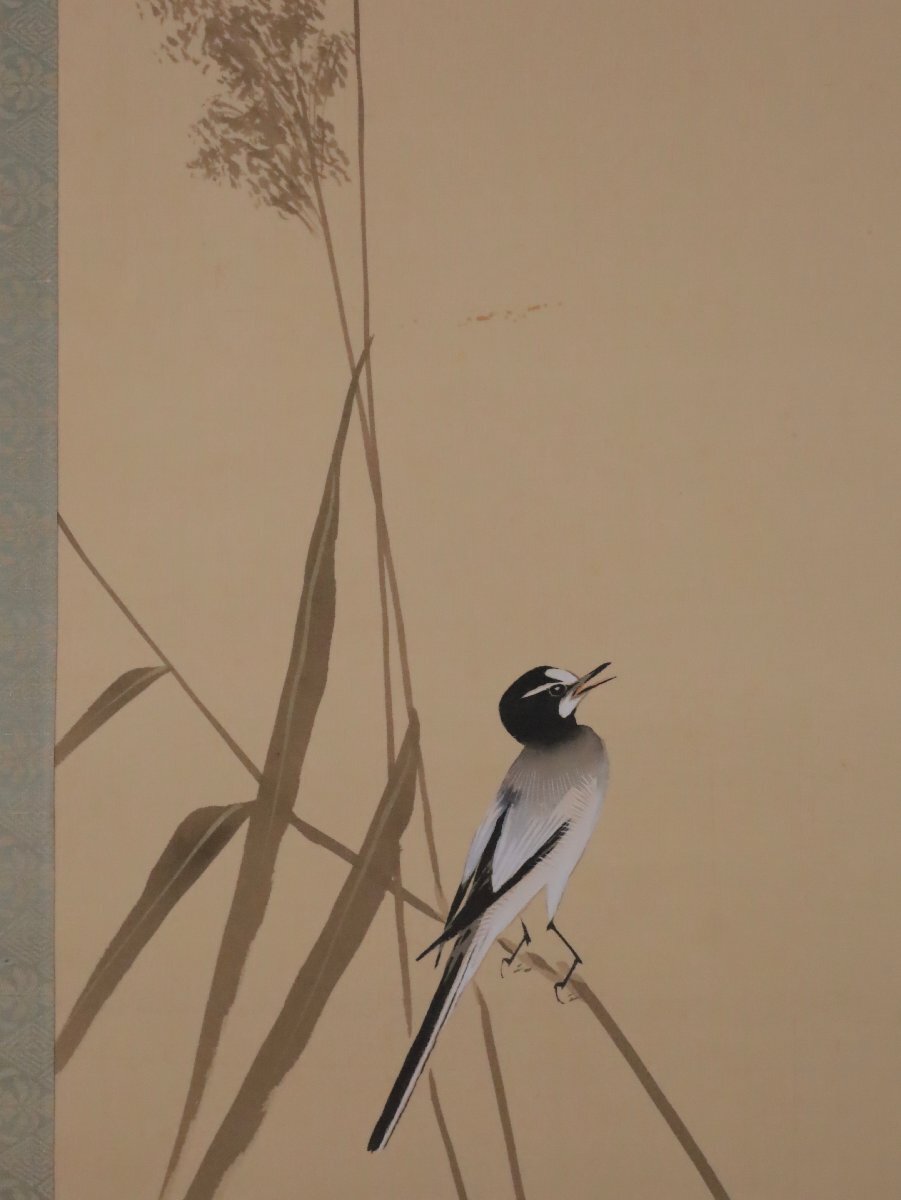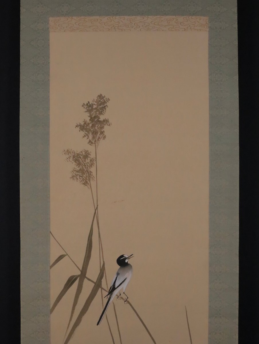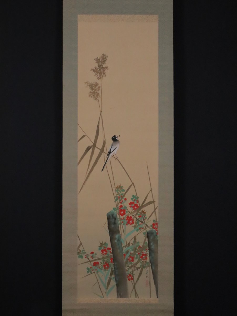 【模写】吉】12168 井口華秋 花鳥図 竹内栖鳳師事 四条派 茶掛け 茶道具 掛軸 掛け軸 骨董品