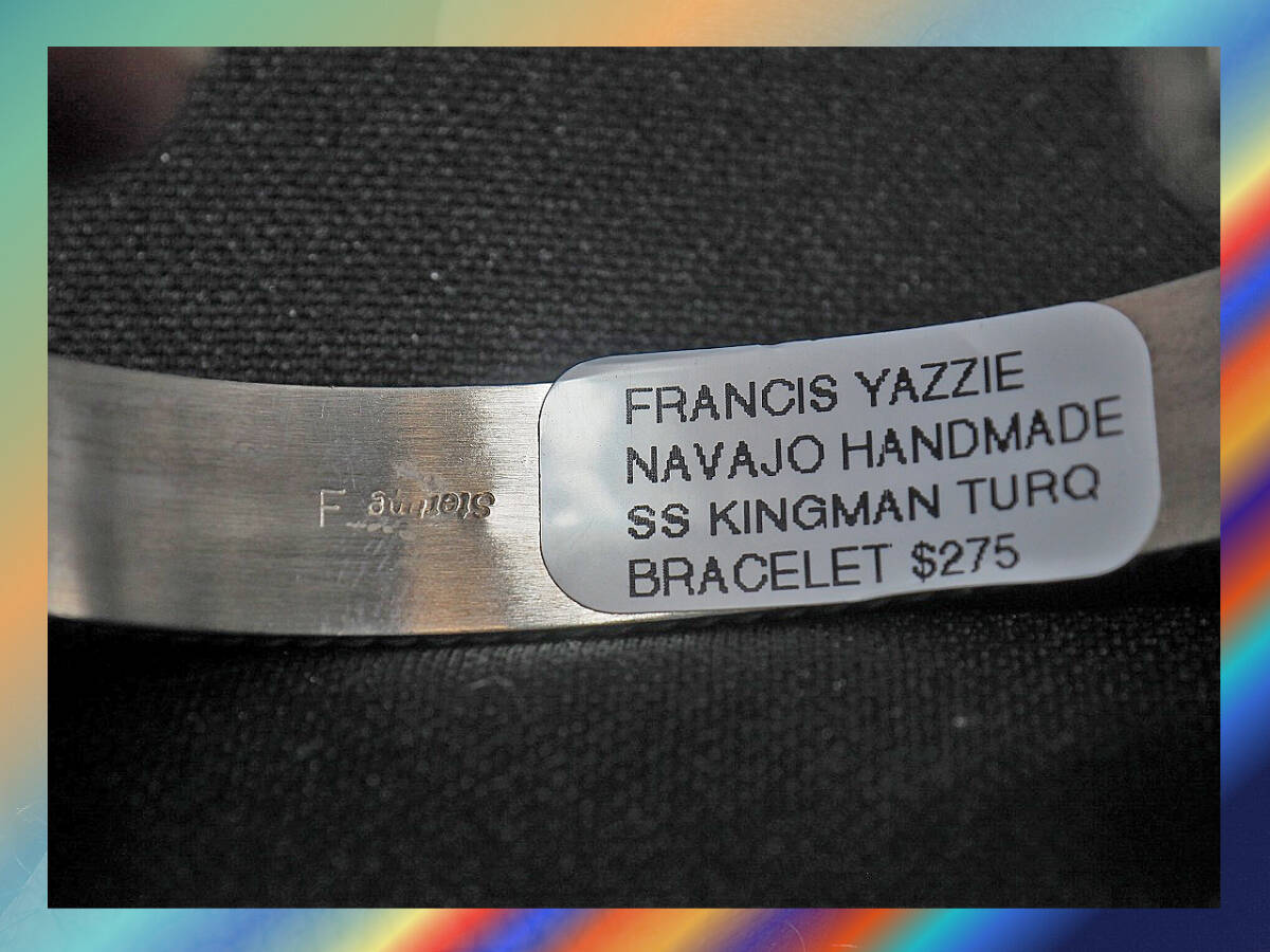 ヴィンテージ物やフレッドハーヴィーのように例外(ナバホ族作家の一部には作品に名前を刻むことを嫌っておりますが、古い作品ほどその傾向があります。)はありますが、新品の場合は、どの部族の出身者が作ったかの記載はあります。