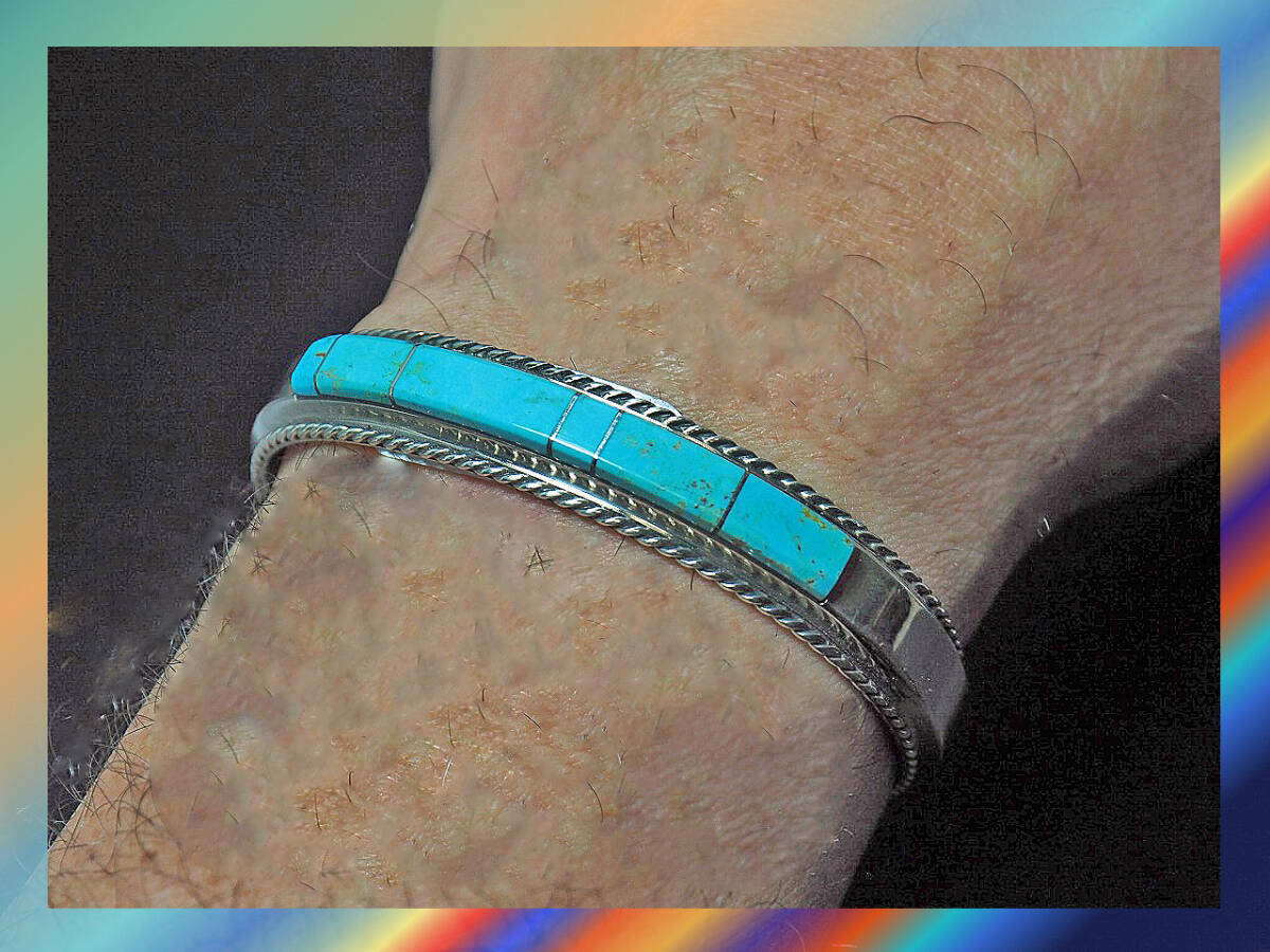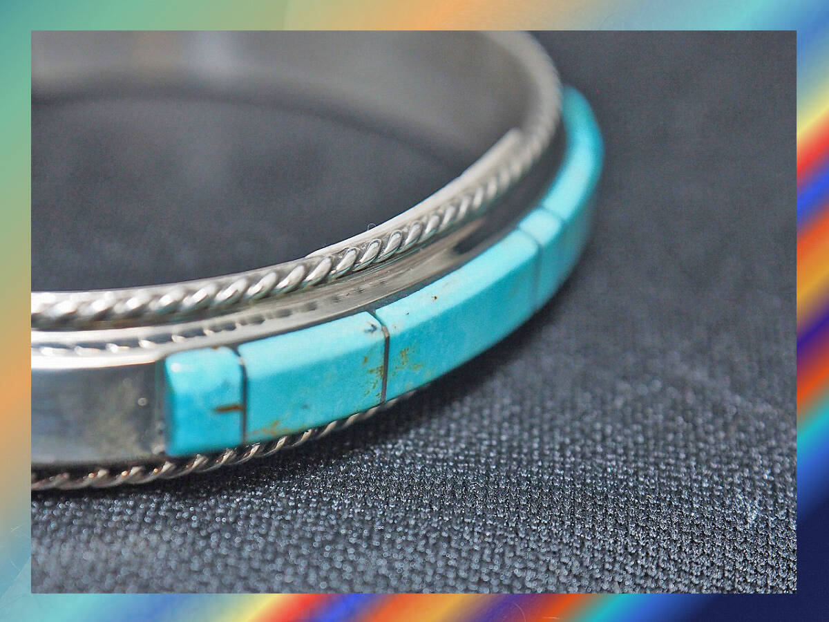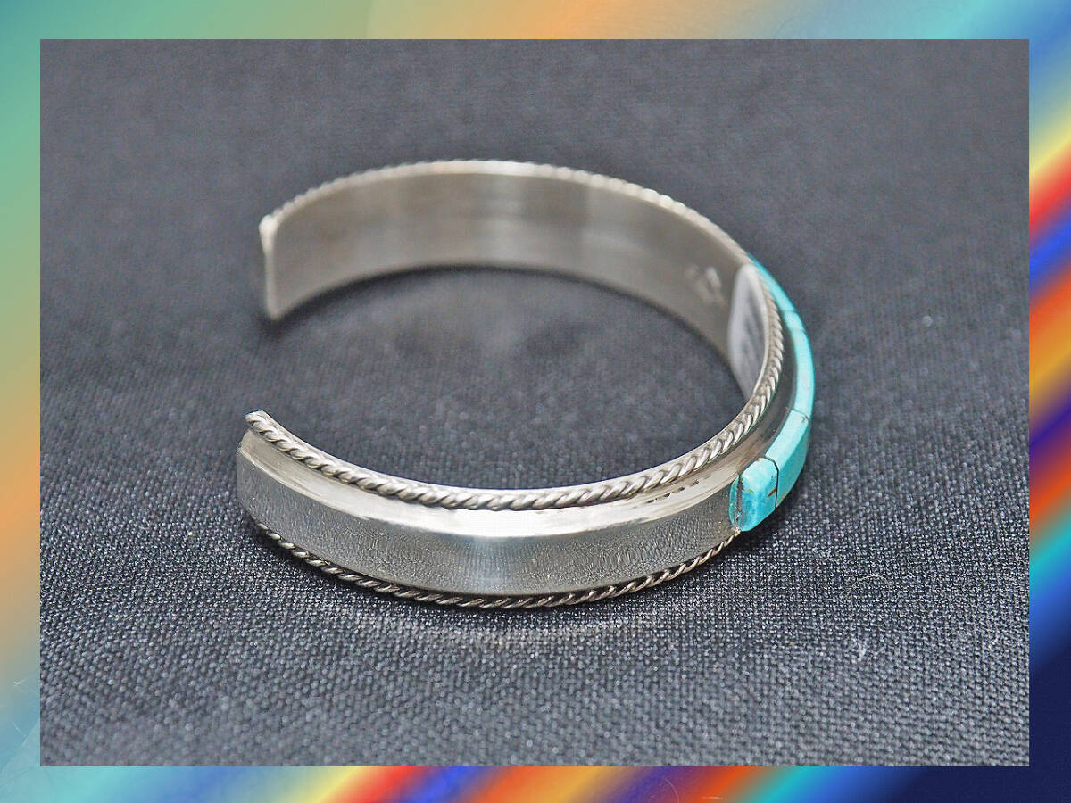 ※インディアンジュエリーの偽物が出回っていますが、インディアンジュエリーと名乗れるのはアメリカの法律では【アメリカインディアン作家による作品】のみで、この作品は本物のインディアンジュエリーです。