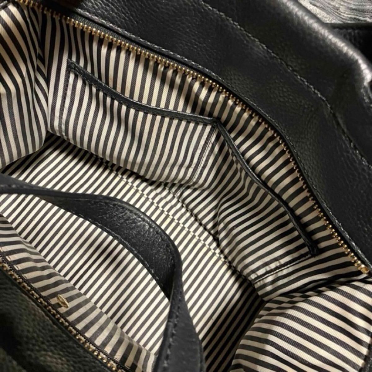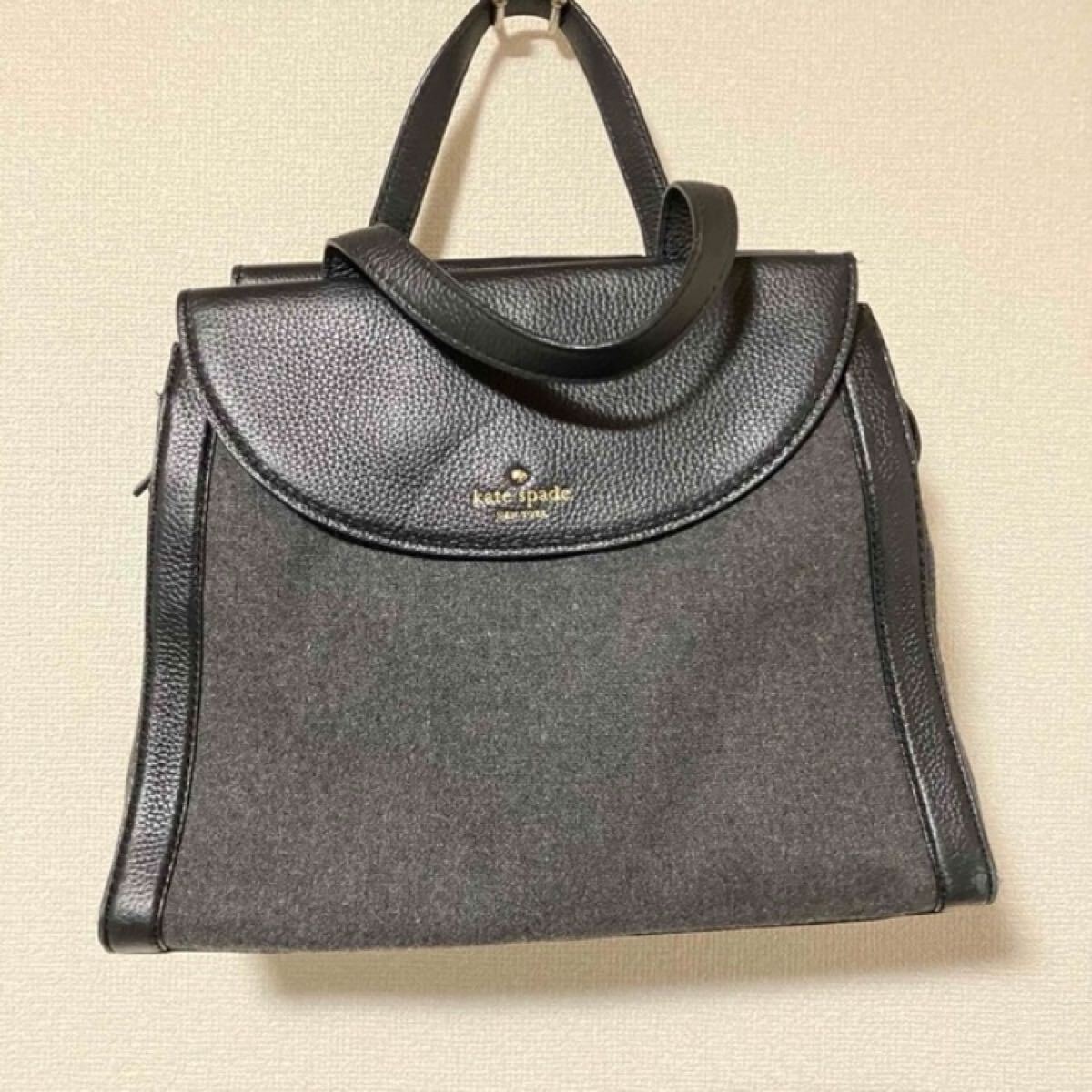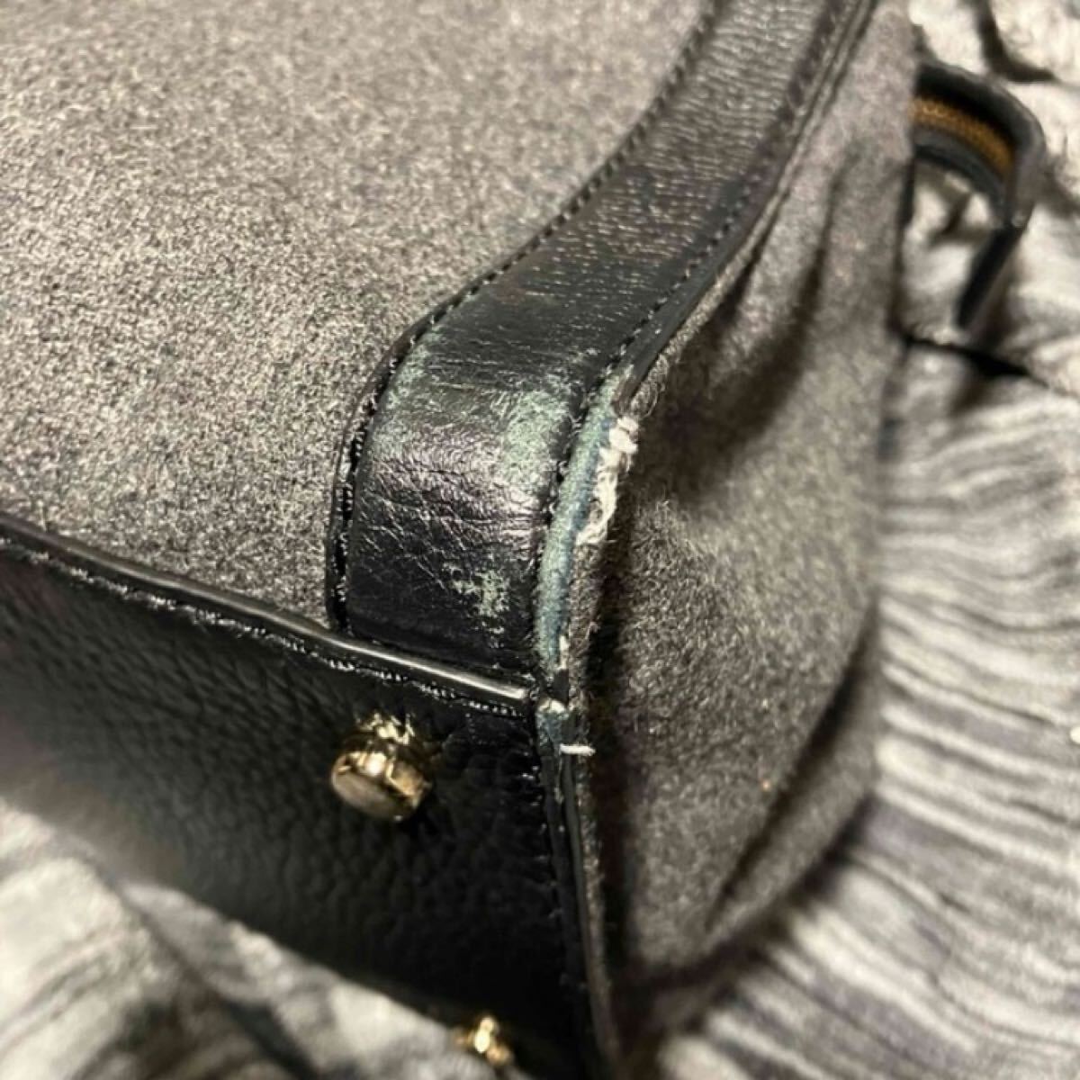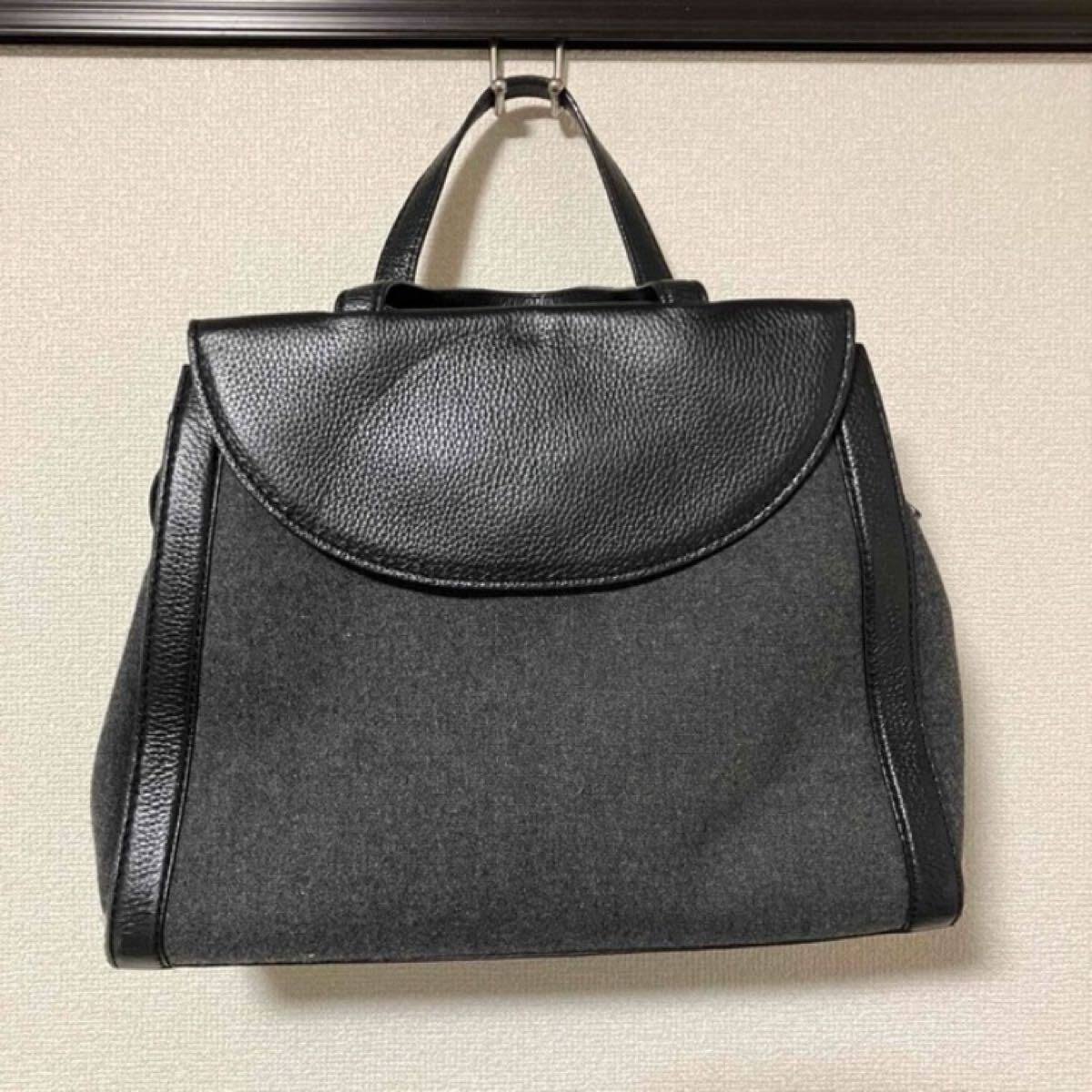 全体的なフォルムは可愛く、グレーの部分はフェルト地になっていて、上品な雰囲気を感じるバッグです♪中もストライプで可愛い。