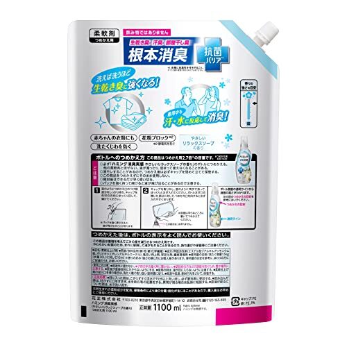 説明商品紹介生乾き臭・汗臭・部屋干し臭を根本消臭/抗菌バリア*1/着用中の消臭はもちろん、洗えば洗うほど生乾き臭に強い衣類へ抗ウイルス*2/やさしいリラックスソープの香り*1衣類に抗菌性を付与すること。すべての菌の増殖を抑えるわけではありません*2衣類に付着したウイルスを減らす。すべてのウイルスを減少させるわけではありませんエンベロープタイプのウイルス1種で効果を検証。繰り返し洗たくすることで効果を発揮原材料・成分成分:界面活性剤(エステル型ジアルキルアンモニウム塩、ポリオキシエチレンアルキルエーテル)、風合い向上剤、安定化剤、繊維潤滑剤 ■ご注文からお届けまで ※トラブル防止のため入札、落札前に必ずご一読をお願い致します。 落札後のお客様都合でのキャンセルはお受けできませんので、予めご了承ください。 1.ご注文 : ご注文は24時間受け付けております。 2.注文確認 : ご注文時、オーダーフォーム等必要事項を入力お願い致します。 3.入金確認 : 前払い決済をご選択の場合、ご入金確認後、配送手配を致します。 4.出荷 : 配送準備が整い次第、出荷致します。配送業者、追跡番号等の詳細をご連絡致します。 5.到着 : 出荷後、1-3日で商品が到着します。 ※商品の到着までは、決済確認後、3-7営業日でお届けとなります。 ※離島、北海道、九州、沖縄は遅れる場合がございます。ご了承下さい。 ※代引の場合、手数料として660円頂きます。 商品管理、在庫管理は行っておりますが、商品の不具合等でお届け出来ない場合は、 銀行口座へ振込返金となりますので、予めご了承いただきますようお願い申し上げます。 手続き削減の為、こちらからは発送完了までご連絡を行なっておりません。 原則、電話対応はしておりませんので、ご質問等はお問い合わせ、またはメールにてお願い致します。 土日祝祭日はご質問や落札されても商品発送等の、対応ができない日もございます。 予めご了承ください。 | ||