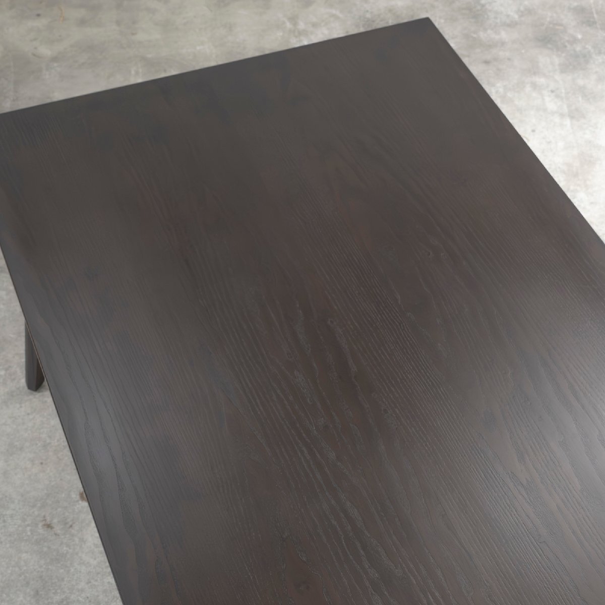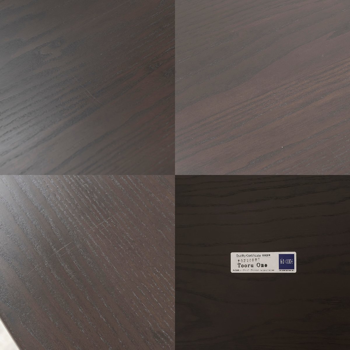 力強いホワイトアッシュ材の木目を生かすアンバーブラックで塗装することで濃淡が生まれ、昼と夜の雰囲気の違いもお楽しみいただけます。