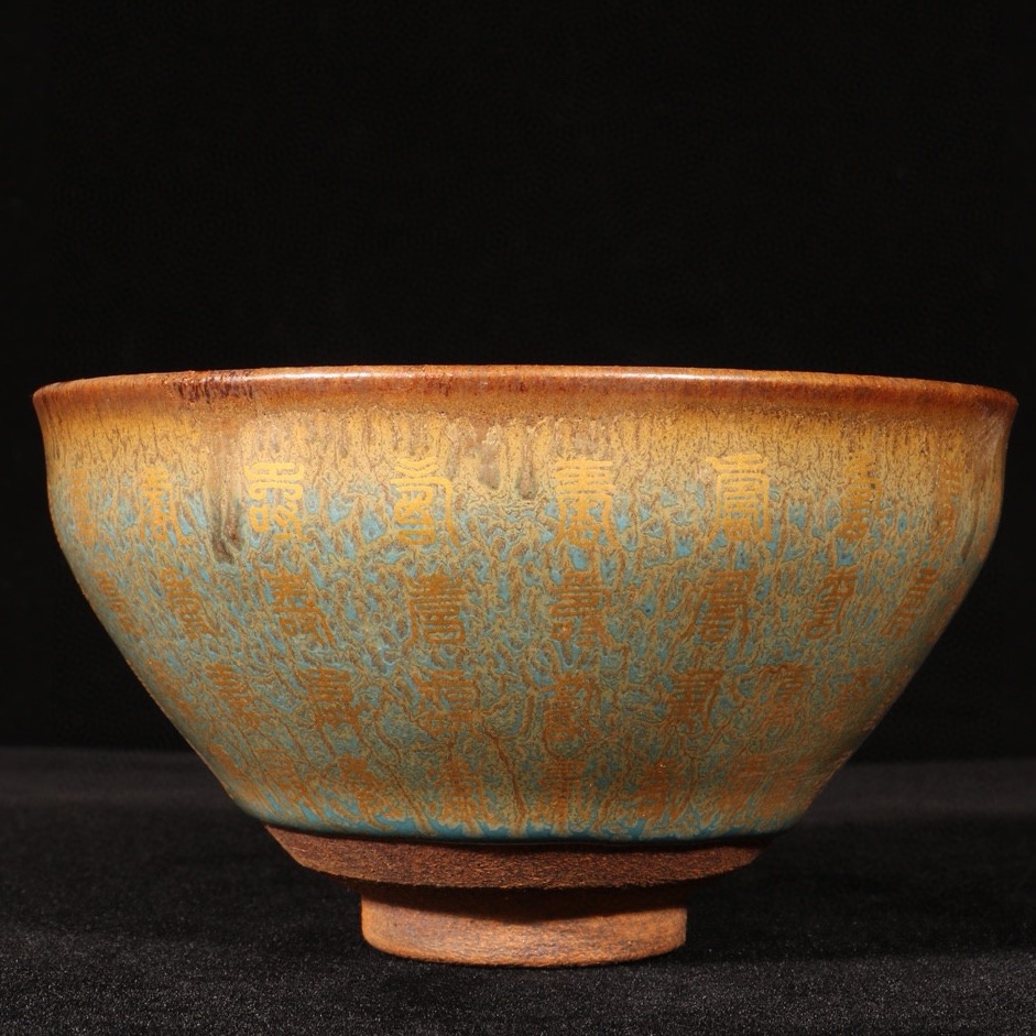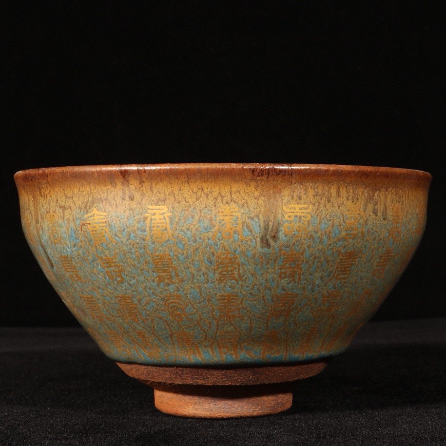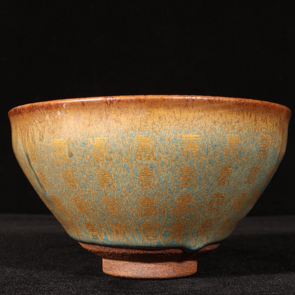 唐物 宋 建窯 供禦款 描金 壽字紋 盞 陶芸 古陶磁器 中国美術品 時代物 D63