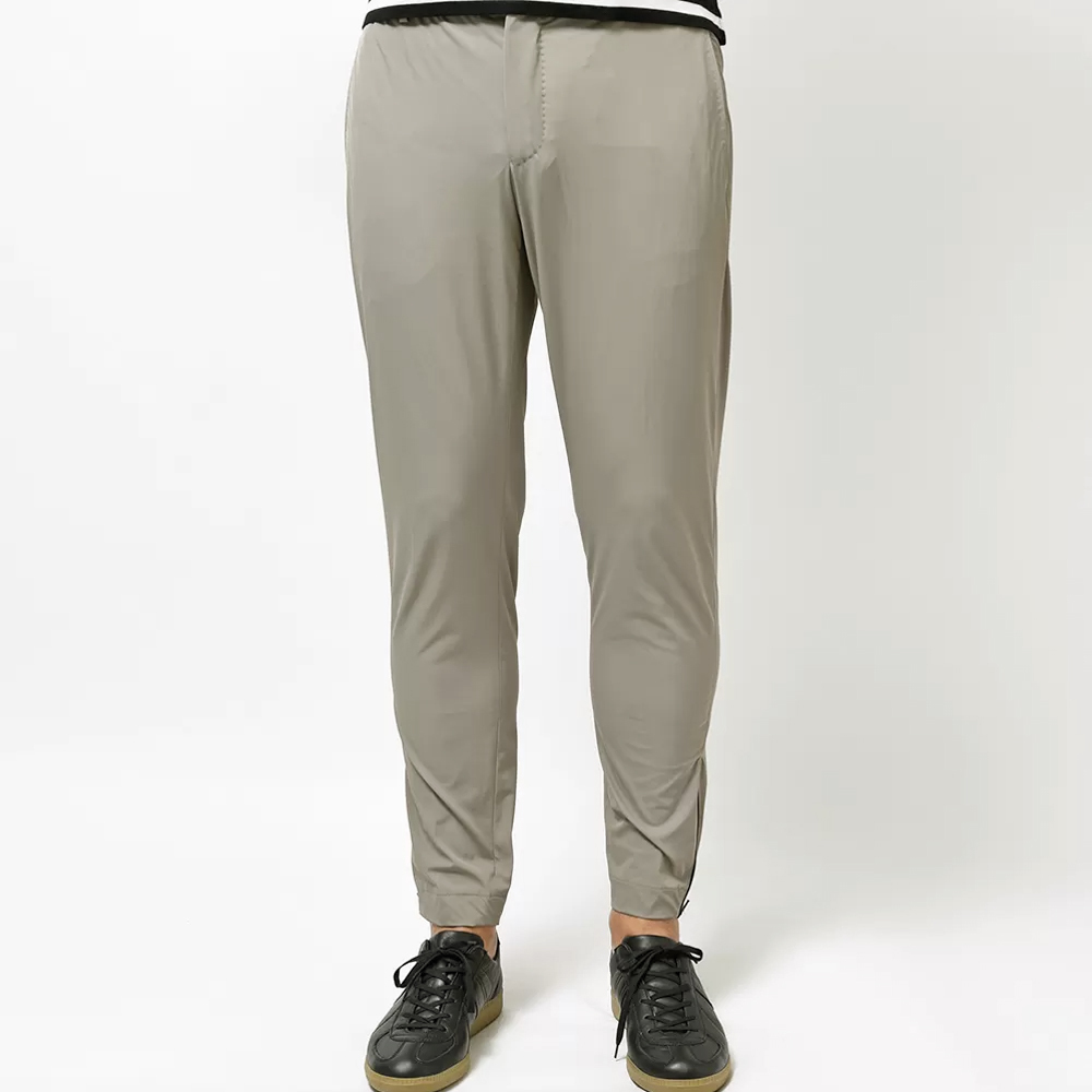 スラックスの見た目ながら、高機能素材を使用し、裾部分のジップ仕様がリラックスした着心地です。
