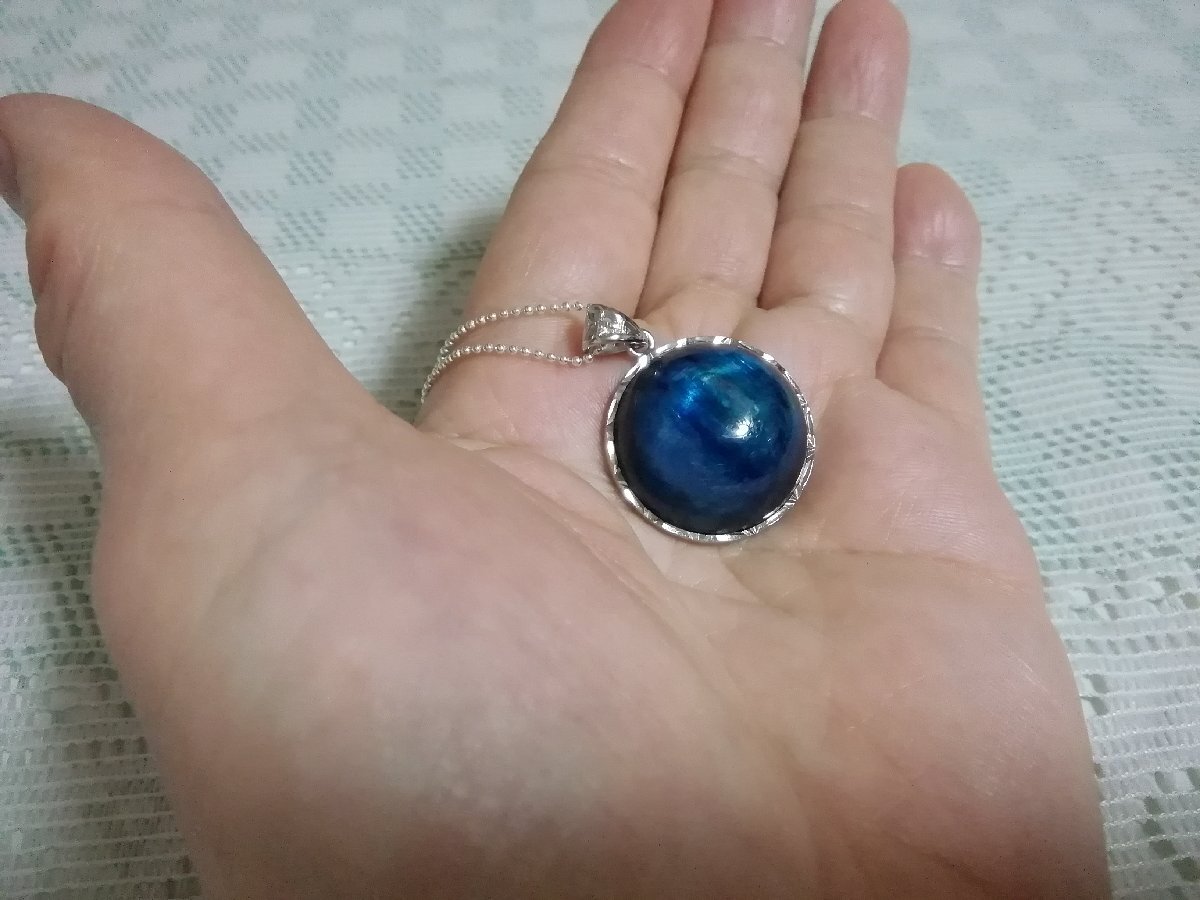特徴 | 特徴: 繊維状結晶が美しい高発色ペンダントトップです。 一定の方向に入った結晶が何重にも重なった層のように見えます。 繊維が光に反射するとキャッツアイのような光り方をします。 カイヤナイトにしか出せない 特有の藍青カラーに うっとりしてしまうほどです。 ![]() 味わいのあるブルーカラーが 素敵なシルバーのペンダントトップです! ![]() カイヤナイトは、持つ人の世界観の確立を促すといわれます。 意志を明確にし、迷いを取り去る 古い思考パターンを断ち切るといわれています。 ![]() こんな時・人におすすめ ○ 精神的なパワーを増幅させたい ○ 進むべき方向をはっきりさせたい ○ 途中で挫折しやすい ○ 古い固定観念を払いたい ○ 腐れ縁を切ることができない ![]() ○ 表現力と創造力を高めたい ○ 洞察力と直感力を高めたい ○ 過去のトラウマから抜け出したい ○ 本来の自分らしさを発見したい ○ 人間関係を円滑にしたい ![]() ○ 新しいことに挑戦したい ○ 不安や恐れを取り去りたい |