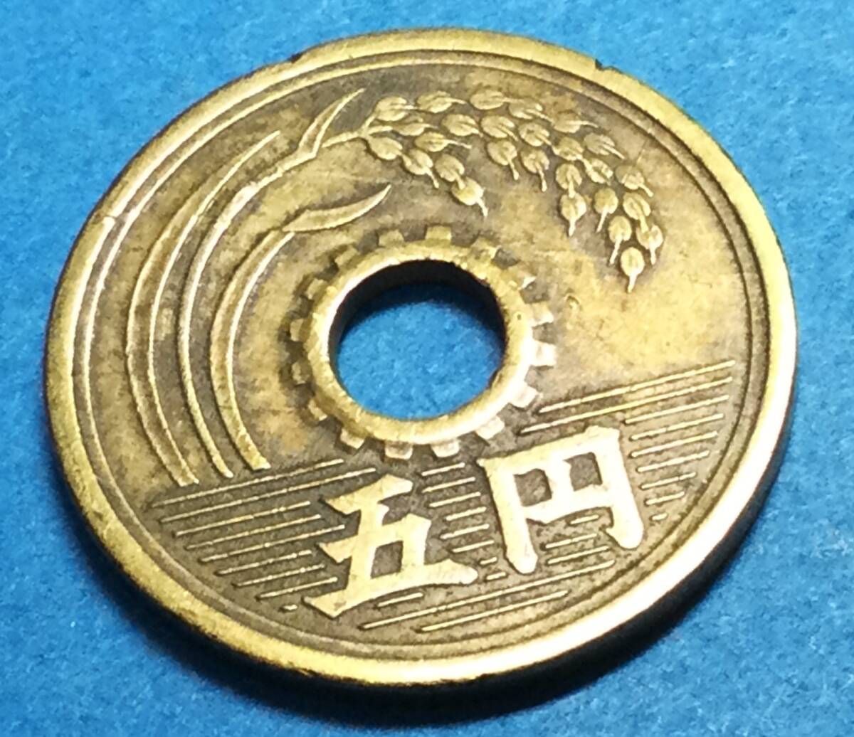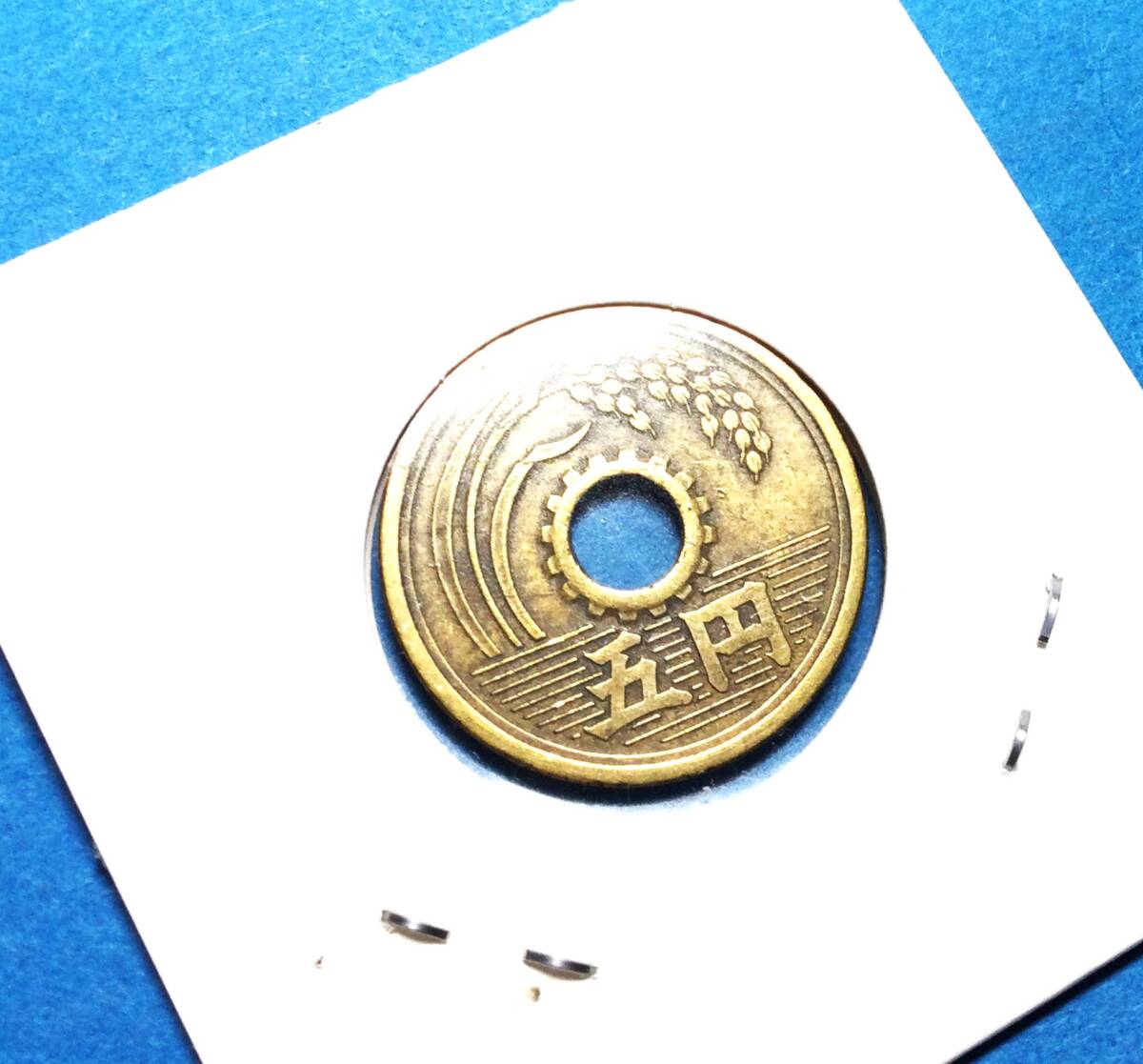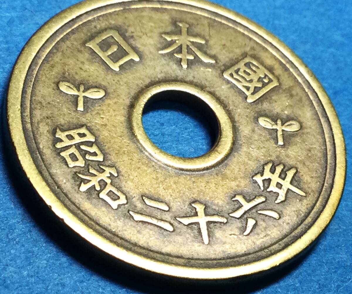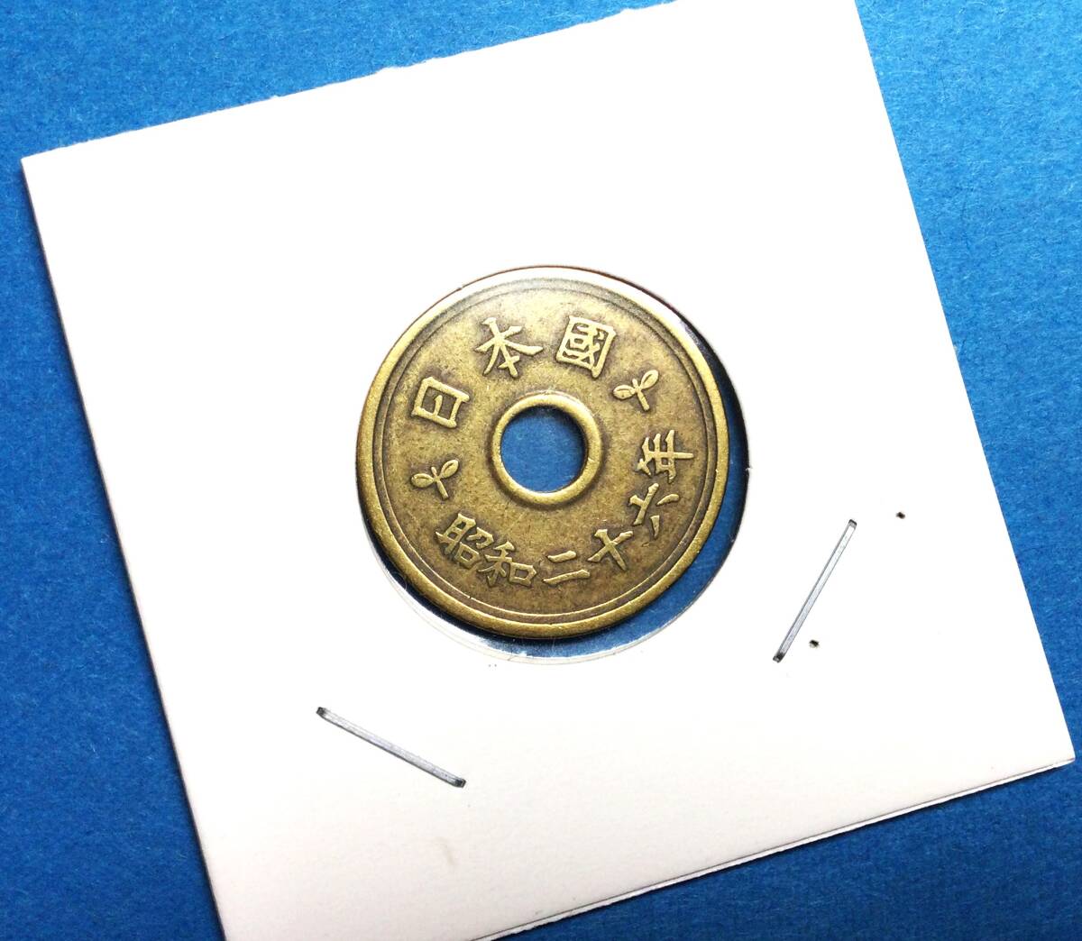 807 【フデ5・楷書体】 昭和26年  5円黄銅貨  希少品 ペーパーコインホルダー入り