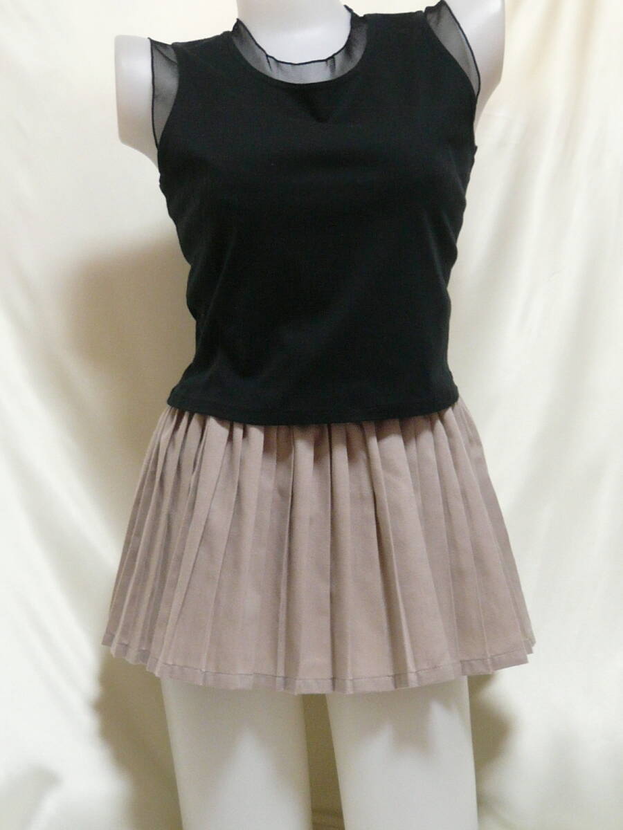 ♪♪ベージュ系麻混の超マイクロミニ☆シンプルプリーツ^^♪♪