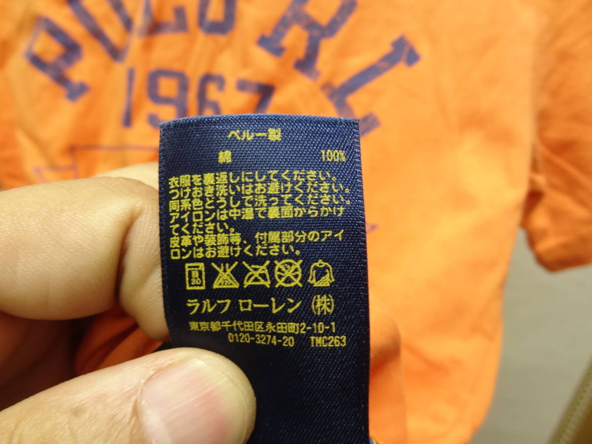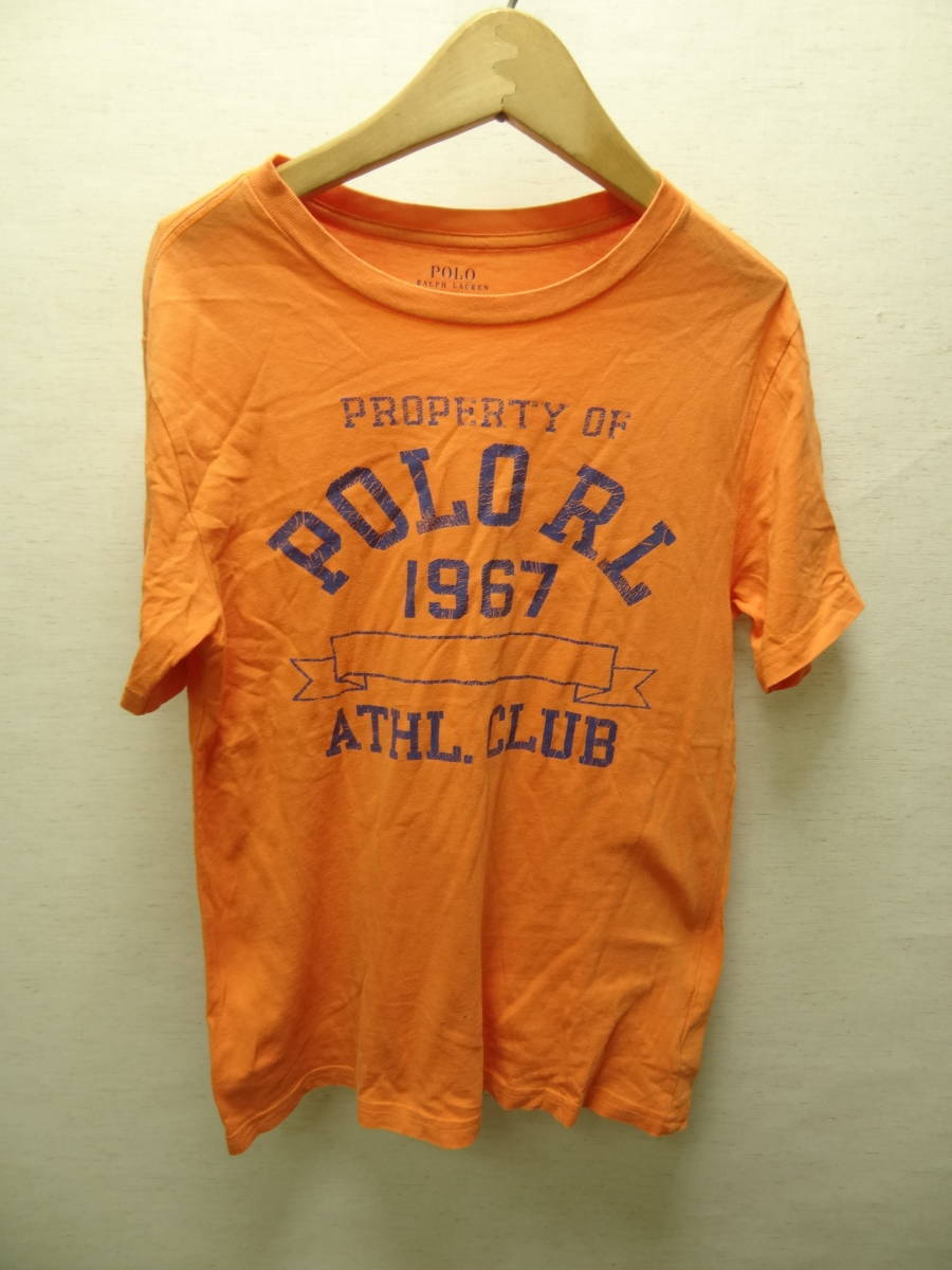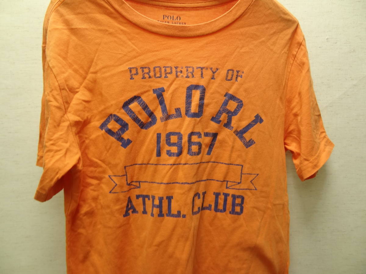 全国送料無料 正規品 ポロ ラルフローレン POLO RALPH 子供服キッズ男の子 綿100% ビンテージ風プリント オレンジ色半袖Tシャツ 150(M)