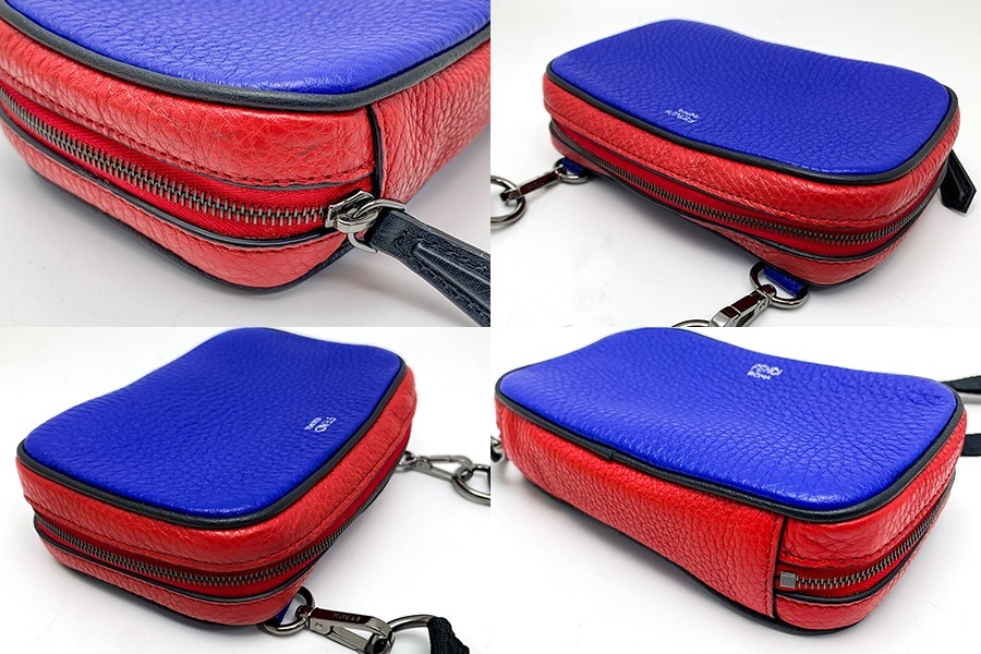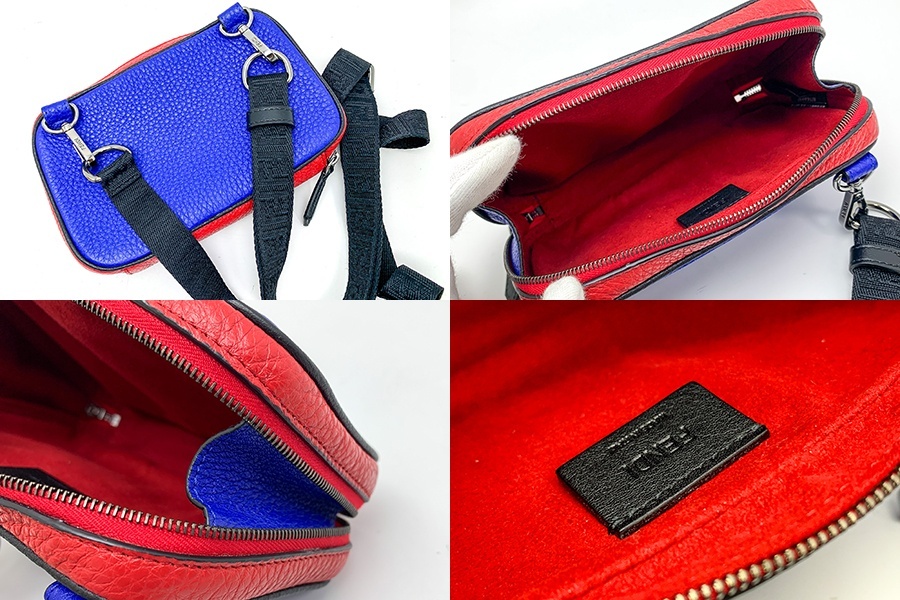 フェンディのミニショルダーバッグになります。赤・青・黒のマルチカラー。ファッションアイテムとして、このご機会にいかがでしょうか。ABランク。底に小さな汚れ、角スレ・角に汚れ少々あり。金具にうっすらと小傷がございますが、比較的綺麗なお品になります。 | |