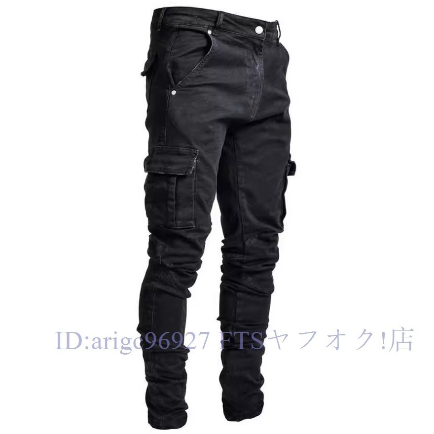 ★新品サイズ選択可秋 ジーパン ジーンズ カーゴパンツ デニムパンツ メンズ スキニーデニム 作業着 パンツ ワークデニムブラック S~4XL