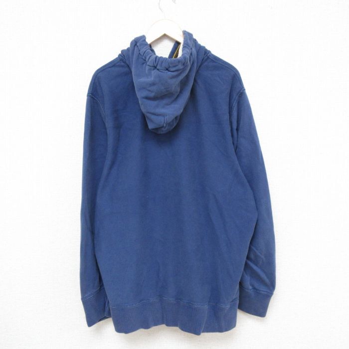 【商品名】 XL★古着 アメリカンイーグル American Eagle 長袖 スウェット パーカー メンズ ビッグロゴ 刺繍 ロング丈 薄紺 フード内側サーマル