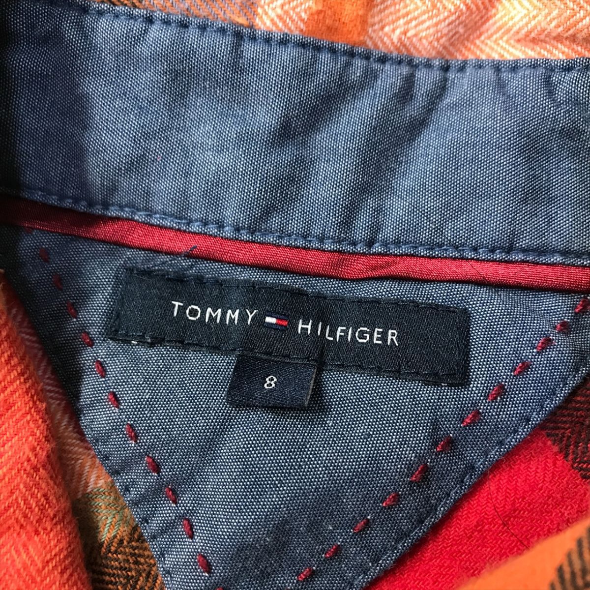 《良品◎》TOMMY HILFIGER トミーヒルフィガー★チェック*フリルデザインシャツ*レッド/バーミリオン*サイズ8(LA2391)◆S60