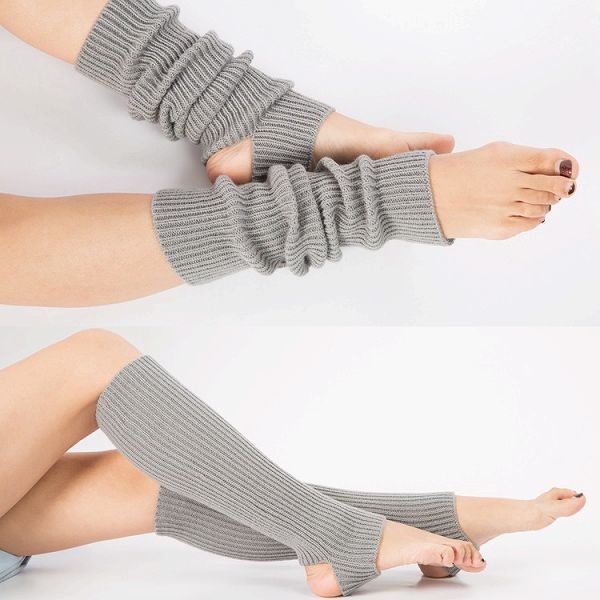 「b6e-a2」 ヨガ レッグウォーマー 滑り止め かかとなし おしゃれ 靴下 レディース 防寒 グレー