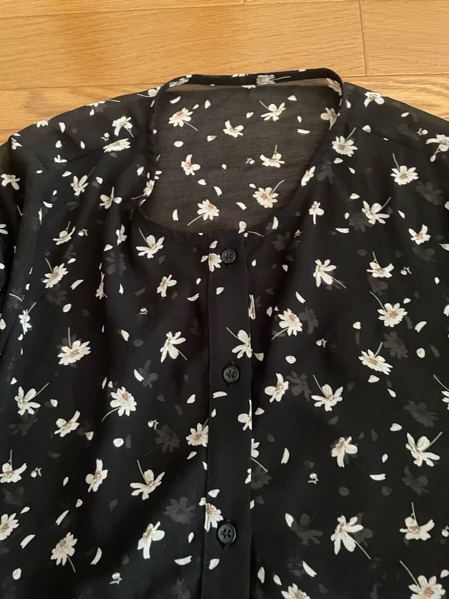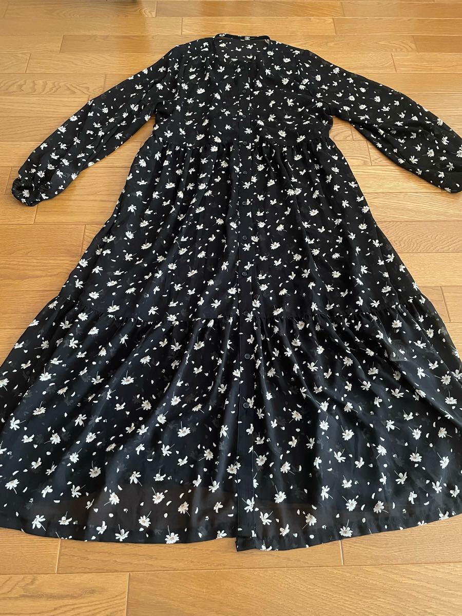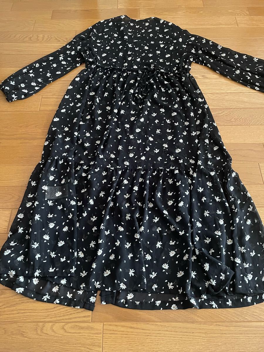 slowmelly スローメリー 黒色ブラック 長袖 シアー 花柄フラワー ガウン フロントオープンロングワンピース フリー