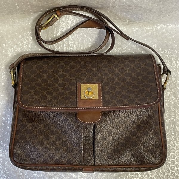 ★ CELINE セリーヌ ★ ショルダーバッグ ( M10 ) マカダム柄 ブラウン 茶色 PVC レザー ワンショルダー ショルダーバック ■ 松1136三