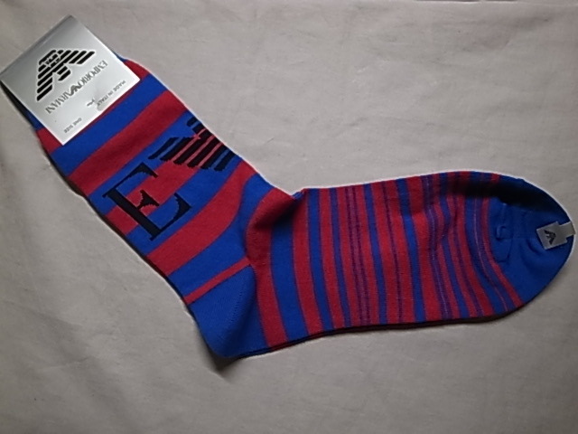 ★EMPORIO ARMANI エンポリオ アルマーニ ソックス 02342418 65 ボーダー柄 ブルー★