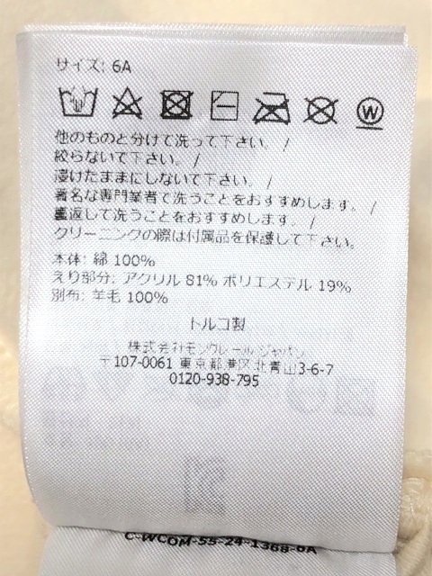 二点以上で送料無料! 2A48【ほぼ未使用】モンクレール キッズ コットン フリース カーディガン ジャケット 6才/116㎝ オフホワイト 子供用
