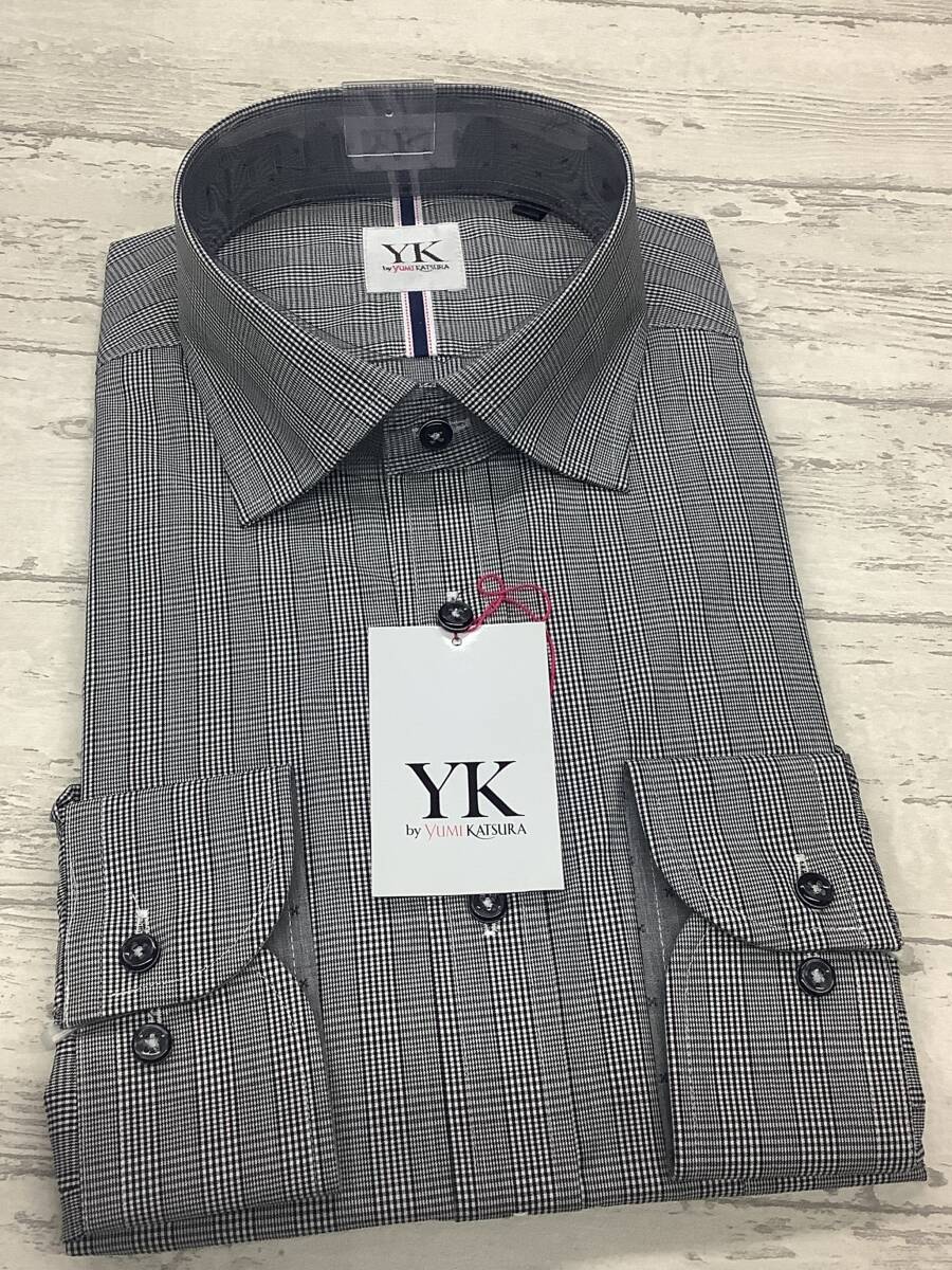 新品未使用★41-85 長袖Lサイズ ★グレンチェック柄、グレーベース色 ワイドカラー定価4,990円 形態安定 綿ポリ