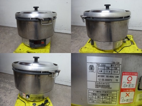 IK1209|ガス炊飯器 リンナイ 都市ガス 100V RR-50G1 5升炊き 3.6L~9L 中古 業務用 店舗用