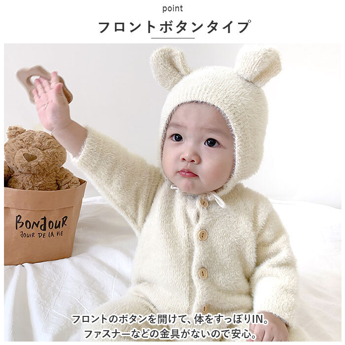 | 商品説明 | ・・思わず写真に収めたくなる可愛さ♪くまちゃんモチーフのベビーロンパースが新登場。 ・【柔らかく優しい肌触り】 ・ファーのような、ふんわりとした生地感。程よいストレッチ性もあり、ベビーの体を優しく包み込んでくれるロンパース。 ・【フロントボタンタイプ】 ・フロントのボタンを開けて、体をすっぽりIN。ファスナーなどの金具がないので安心。 ・【全身を覆ってあったか♪】 ・つま先が出ず、足元まであたたかい♪靴下を履かせる手間が不要で、足元をガード。 ・【お揃いのボンネット帽子付き】 ・ロンパースとセット使いできて、可愛らしさ満点☆くまちゃんの耳がアクセント。 ・【選べるカラー&サイズ】 ・肌なじみの良いカラーをラインナップ。成長に合わせて選べる4サイズ展開! ・【イベントや写真撮影に】 ・月齢フォトやクリスマスなどのイベントでも大活躍◎ |