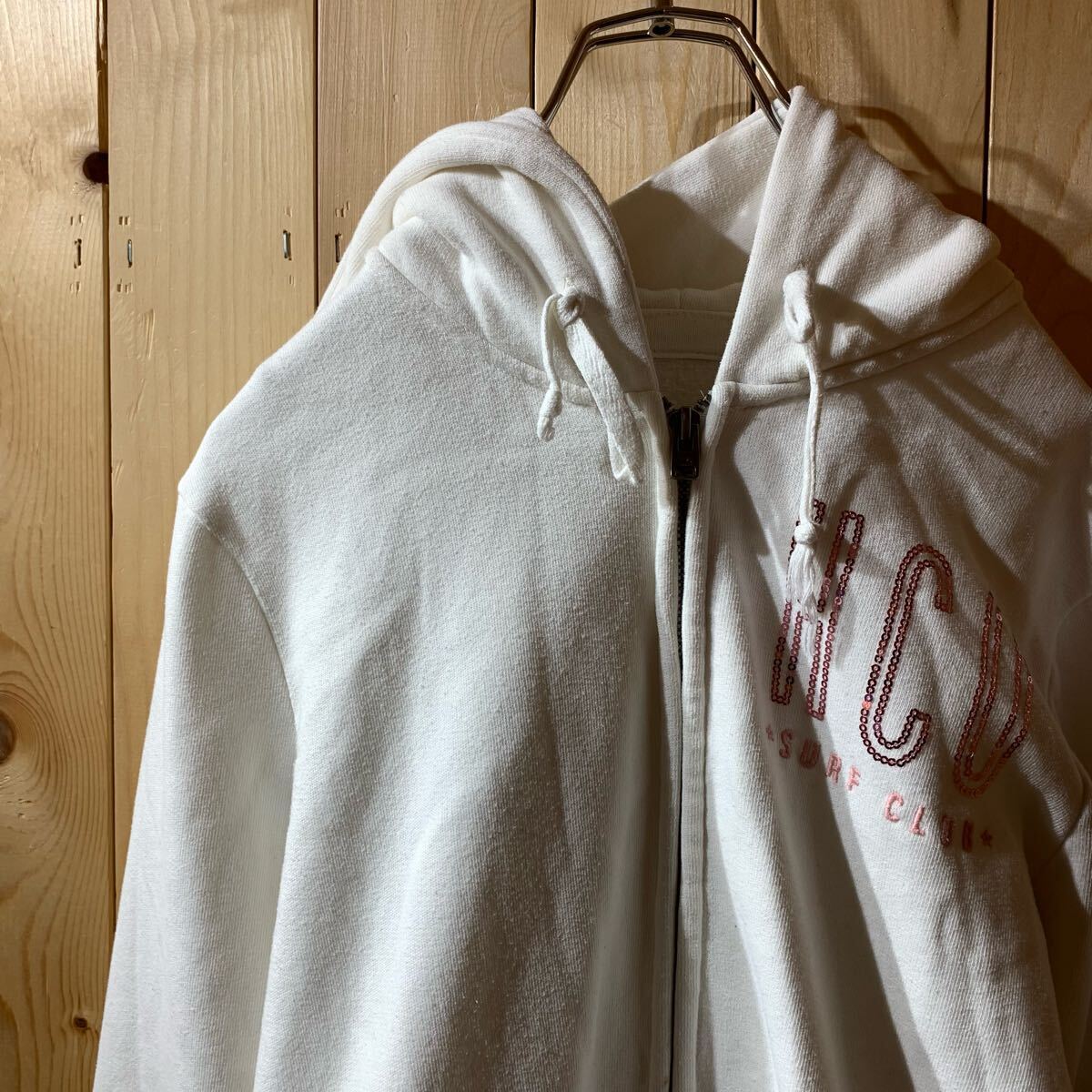 [YUK222]HOLLISTER ホリスター フルジップ パーカー ジップアップパーカー スパンコール 刺繍 白 S