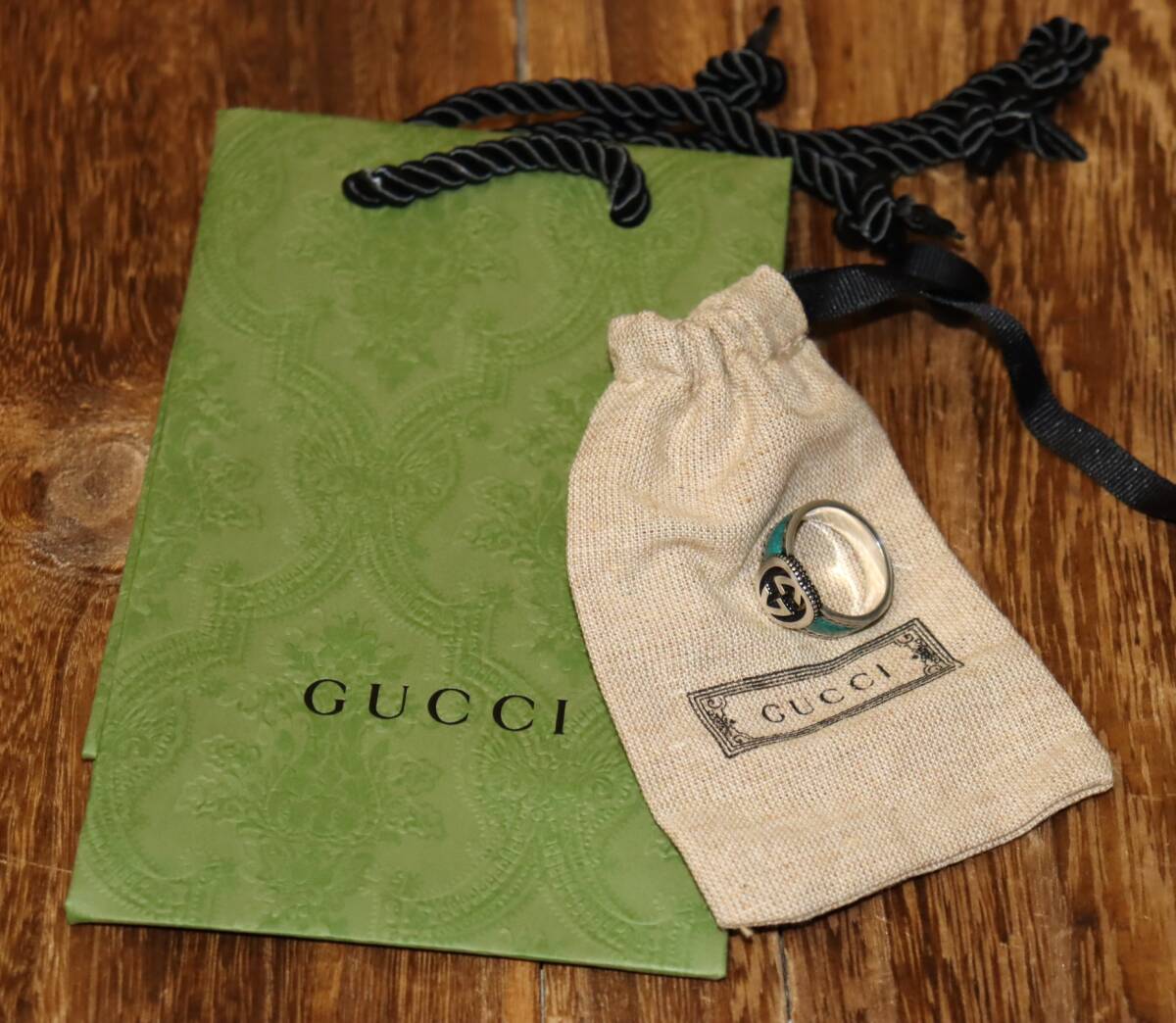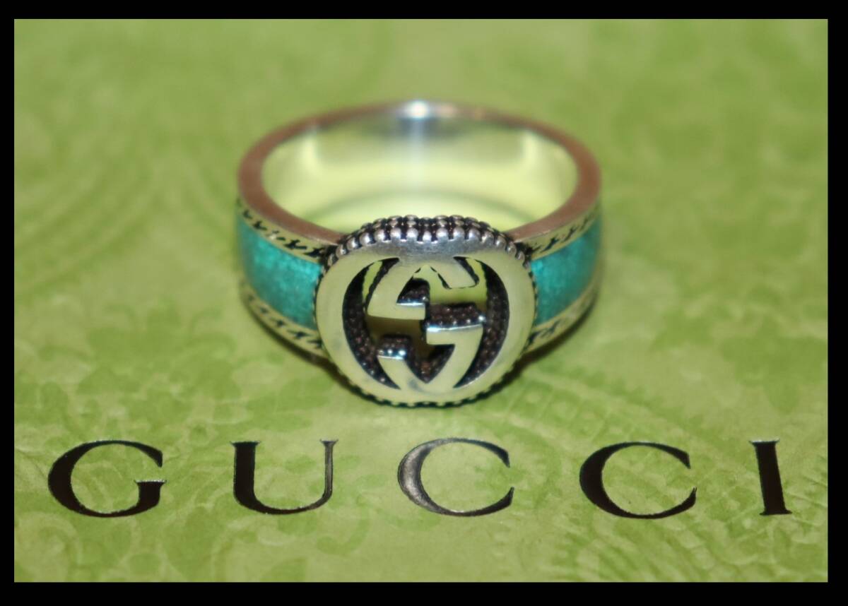 送料無料 即決【未使用】 GUCCI ★ インターロッキングG リング ターコイズ エナメル 23号 シルバー ★ グッチ 国内正規品 指輪 645572 併